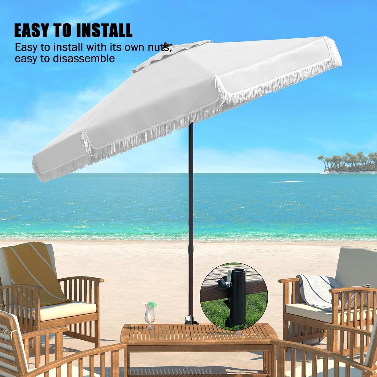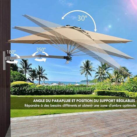☀️Matériau de Haute Qualité : Le tissu en polyester durable est non seulement imperméable, résistant au soleil et aux intempéries, mais aussi résistant à la déchirure et à la décoloration, ce qui garantit une utilisation à long terme en extérieur. GOPLUS 247CM Parasol Cantilever Mural, Parasol de Jardin Extérieur avec Tête Inclinable & Support Réglable, 8 Baleines Robustes & Aération, pour Balcon, Terrasse, Cour (Rouge Description : Fabriqué en tissu polyester durable, ce parasol est imperméable, résistant au soleil, aux intempéries, aux déchirures et à la décoloration, ce qui garantit une utilisation extérieure à long terme. Son aspect élégant et stylé met en valeur votre espace et est parfait pour les jardins, les patios, les terrasses et autres environnements extérieurs. ☀️Facile à Installer et à Ranger : En suivant les instructions détaillées et les accessoires nécessaires fournis, ce parasol de terrasse peut être facilement installé sur un mur sans support de parasol. ☀️Construction Solide et Stable : Grâce à sa structure en alliage d'aluminium résistant et à ses 8 baleines robustes, le parasol présente une excellente résistance à la rouille et à la corrosion, et offre un soutien et une stabilité solides pour une grande tranquillité d'esprit ☀️Angle Ajustable : La tête du parasol peut être inclinée vers l'horizon pour un angle optimal et une meilleure protection contre le soleil. Drfeify Parasol à double tête avec LED taupe 316x240 cm HB012... L'aération sur le dessus favorise la circulation de l'air. GOPLUS Parasol de Jardin à 3 Niveaux D.3M avec Évents Doubles 247CM Parasol Mural, Parasol De Terrasse Avec Tête Inclinable & Support Réglable, Parasol De Terrasse Avec Tete Inclinable Support Reglable Parasol De Jardin Exterieur 8 Baleines Robustes Aeration Rouge 96422233 De plus, l'aération sur le dessus favorise la circulation de l'air. La conception réglable permet d'incliner la tête du parasol vers l'horizon pour une meilleure protection contre le soleil, tandis que le support peut être ajusté à différentes positions pour répondre à différents besoins. Facile à installer grâce à deux options de montage au choix. Caractéristiques : Tissu en polyester imperméable et résistant au soleil qui dure longtemps Aération sur le dessus pour favoriser la circulation de l'air Cadre résistant et 8 baleines robustes pour un soutien stable Tête du parasol inclinable vers l'horizon pour un ombrage optimal Support réglable en différentes positions pour des besoins variés Parasol à montage mural facile à installer et peu encombrant Fermeture éclair pratique pour un pliage et un rangement rapides Zone d'ombre spacieuse pour les activités de plein air Convient aux jardins, patios, terrasses, balcons, etc. Spécifications : Couleur : Beige/Brun Matériau : Aluminium, Polyester Dimension totale : 247x180 cm ( (Dia.