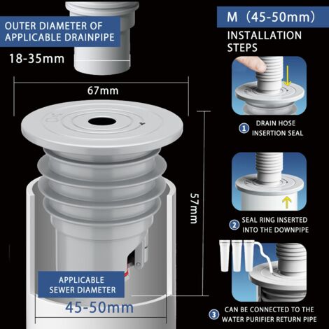 【Matériaux de haute qualité】Bouchon anti odeur machine à laver fabriqué en silicone de haute qualité, non toxique et inodore, sûr et respectueux de l'environnement. Bouchon anti-odeur en silicone et ABS pour tuyaux de 35-40mm, assurant un drainage rapide et une étanchéité efficace, idéal pour machines à laver Le joint magnétique et le couvercle anti-odeur à rebond automatique empêchent efficacement les moustiques d'entrer et maintiennent l'environnement propre et hygiénique. L'ouverture unidirectionnelle assure un drainage libre et se ferme automatiquement pour éviter le reflux. Sa conception d'ouverture et de fermeture à 90 degrés assure un drainage rapide, un reflux nul et des fonctions anti-odeurs et anti-débordement à sept couches, rendant votre vie à la maison plus confortable et plus sûre. LaBlanc - Joint De Tuyau De Machine à Laver, 2 Pièces Gris Bouchon Anti Odeur Machine A Laver Bouchon Detancheite De Tuyau Devacuation Joint De Tuyau De Vidange Deodorant Pour Cuisine Domestique 85137195 Équipé d'un bouchon, il convient tuyaux d'évacuation d'un diamètre extérieur de 18 à 35 mm aux tuyaux d'égout d'un diamètre intérieur 35 à 47 mm. 【Facile à utiliser】 L'installation est simple : insérez le tuyau d'évacuation dans le joint d'étanchéité, puis insérez le joint d'étanchéité dans le tuyau d'égout. La taille des pores en silicone peut être coupée de 3 à 8 mm selon les besoins, s'adaptant parfaitement aux tuyaux d'évacuation de différentes spécifications. Le petit trou prévu cet effet peut être percé et raccordé lors de l'utilisation pour répondre à vos différents besoins. Joint Silicone Joint Tuyau Vidange Machine à Laver 35-40mm - Bouchon Silicone Anti-Odeurs - Pour Évier, Lave-linge, Purificateur Eau Evacuation Lave Vaisselle 【Conception unique】 Drainage droit à grande ouverture, évacuation plus rapide, rebond automatique, couvercle anti-odeurs, joint d'étanchéité en silicone pour bloquer les odeurs et prévenir efficacement le débordement et la propagation des eaux usées. Sa conception d'ouverture et de fermeture à 90 degrés assure un drainage rapide, un reflux nul et des fonctions anti-odeurs et anti-débordement à sept couches, rendant votre vie à la maison plus confortable et plus sûre