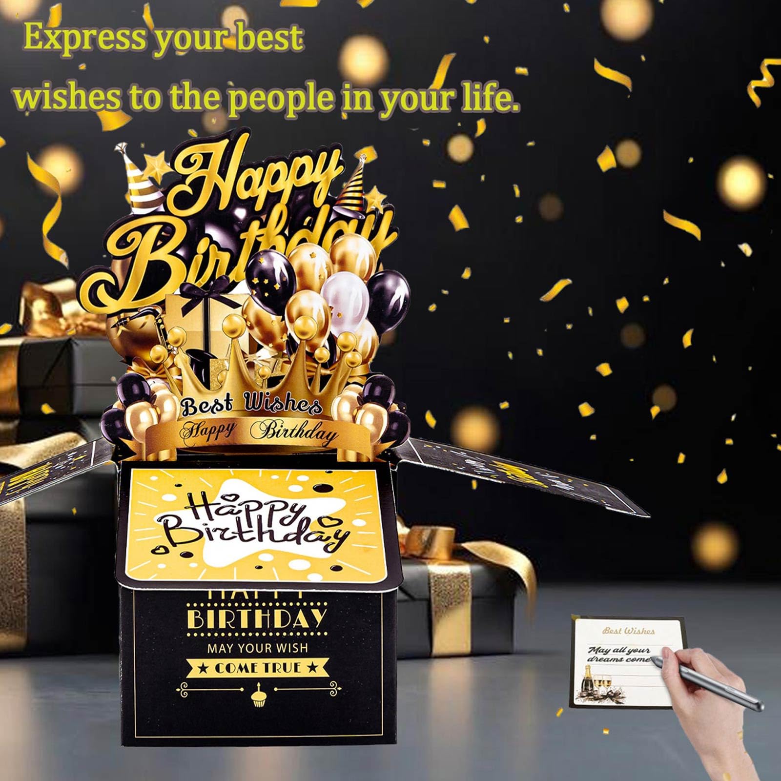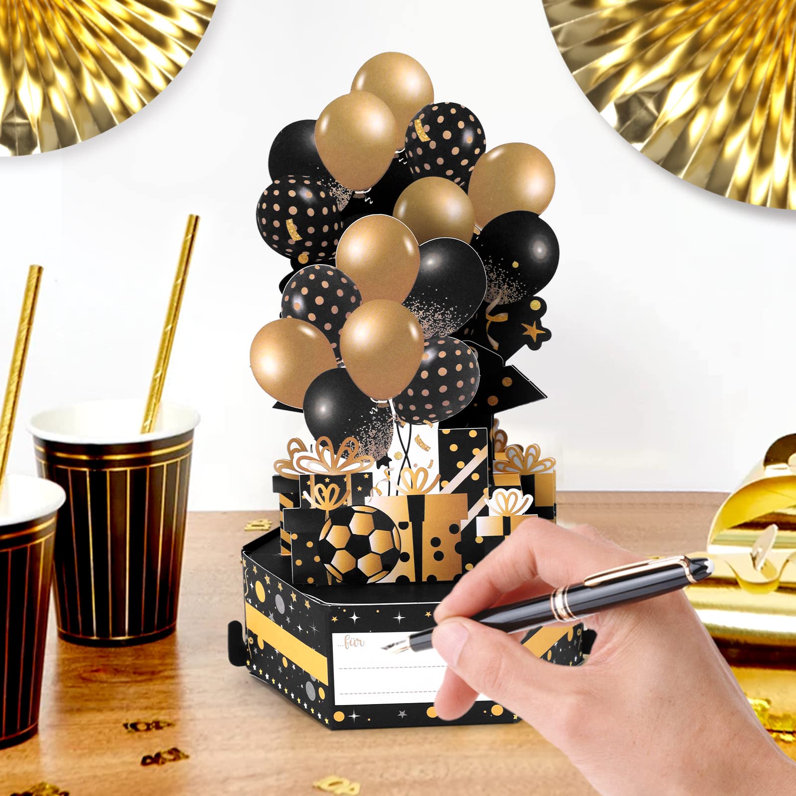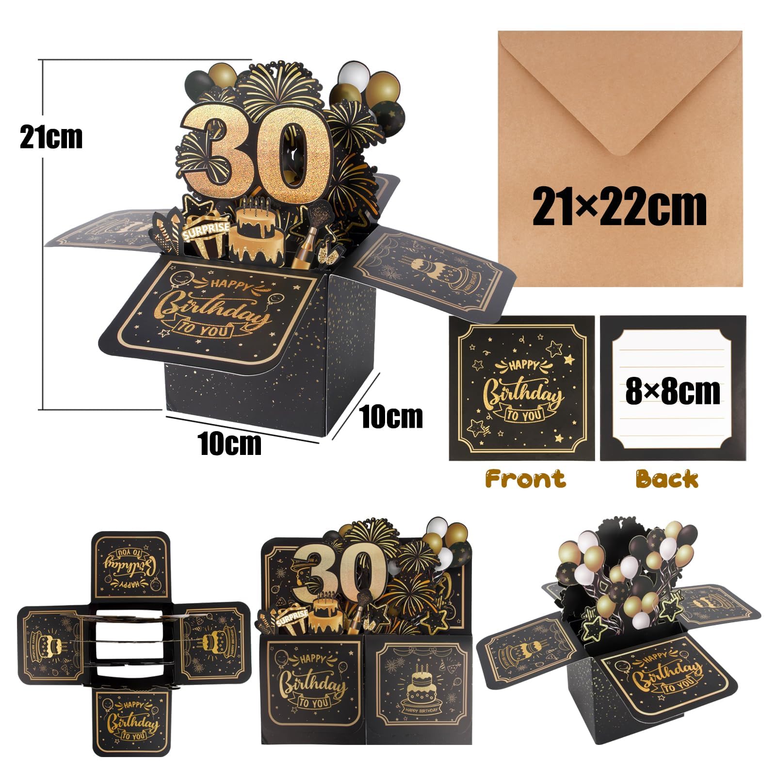 Cadeaux de luxe : les cartes de vœux présentent un schéma de couleurs noir et doré avec des polices et des décorations dorées brillantes, créant une atmosphère haut de gamme et élégante, ce qui en fait des cadeaux parfaits pour les fêtes d'anniversaire spéciales. Achetez YUBBYSTU Cartes de vœux d'anniversaire pop-up 3D, cadeaux d'anniversaire personnalisables, cartes d'anniversaire pour enfants, cartes d'anniversaire 3D noires et dorées, avec enveloppe Description du produit : Caractéristiques : Effet pop-up 3D : par rapport aux cartes de vœux traditionnelles, nos cartes de vœux intègrent des éléments 3D. Si vous êtes à la recherche de cadeaux d'anniversaire uniques et mémorables, ces cartes d'anniversaire pop-up 3D sont le choix parfait. Lorsque vous préparez des cadeaux d'anniversaire pour la famille ou les amis, joindre une carte d'anniversaire avec vos souhaits est un moment très touchant. Avec carte de message pour écrire vos vœux : après avoir ouvert l'enveloppe, vous verrez une carte d'anniversaire et une carte vierge qui peut être écrite avec de bons vœux. Lorsqu'elle est ouverte, c'est une œuvre d'art en trois dimensions, à la fois originale et exquise. Carte D'anniversaire Pop-up 3D - Avec Enveloppes Et Cartes Laissez cette jolie carte pop-up 3D vous aider à communiquer vos meilleurs vœux à votre bien-aimée. Lorsque vous ouvrez la carte de vœux, une scène réaliste apparaît devant vos yeux, donnant au destinataire une expérience différente. Livré avec une enveloppe et une carte de bénédiction : équipé d'enveloppes et de cartes exquises pour écrire des bénédictions, il est pratique de transmettre des pensées exclusives et d'ajouter un charme personnalisé. Design unique : cette jolie carte pop-up utilise un design 3D passionnant et unique avec différentes couleurs et de magnifiques décorations de feux... Carte D Anniversaire Homme Cartes De Vœux Anniversaire, Carte D'Anniversaire 3D Pop-Up Happy Carte Fête Chic Utilisation polyvalente : convient pour les anniversaires, la fête des mères, la Saint-Valentin, les bénédictions de remerciement et d'autres scènes, alliant beauté et praticité.