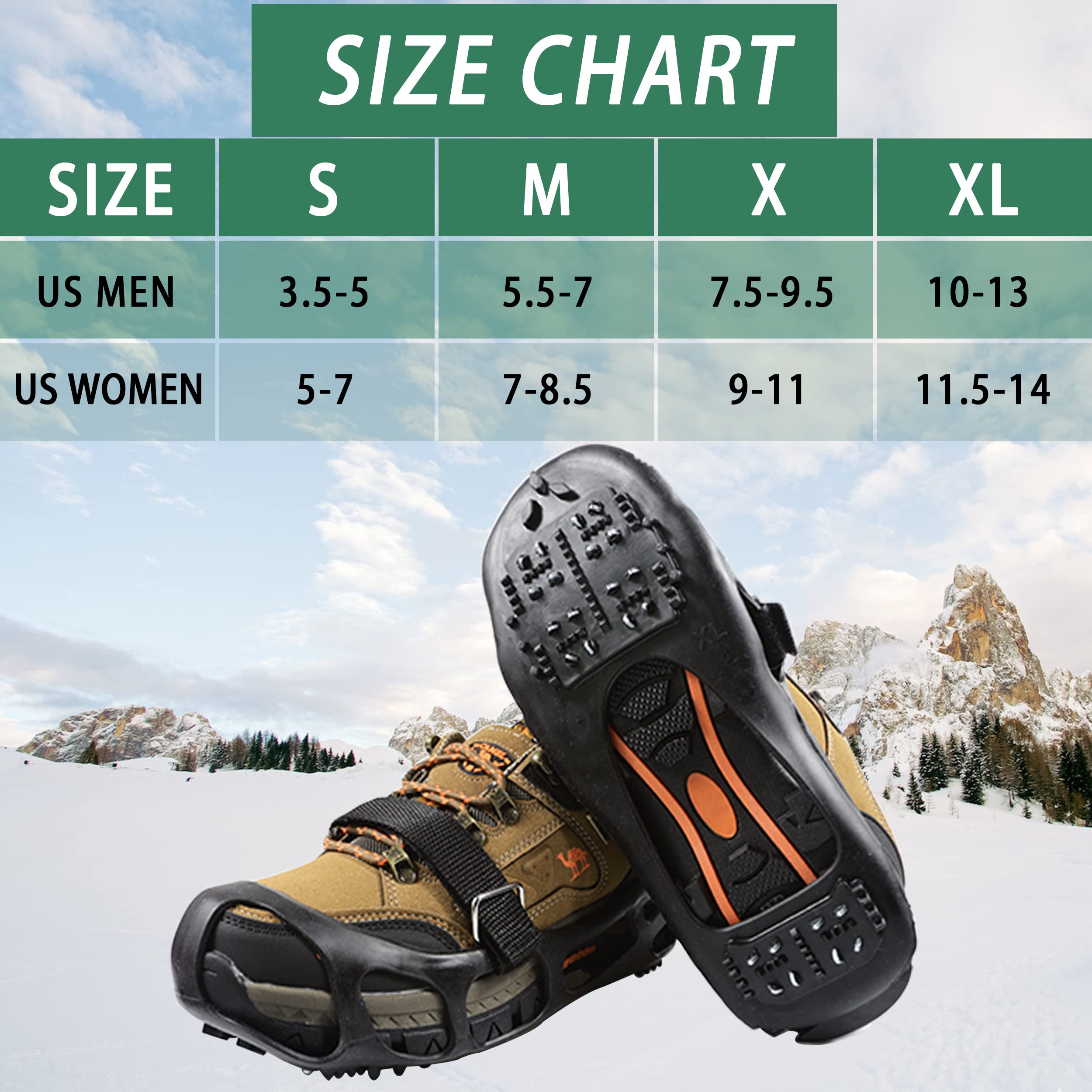 Avantages: - L'hiver, c'est le moment des glissades Ne prenez pas le risque de tomber à la légère. Crampons Randonnée Neige FORMIZON Crampons Antidu00e9rapants, Crampon Neige, Crampon Neige Pour Chaussure Avec 10 Dents En Acier Inoxydable, Ski Glace Verglas Randonnu00e9e Pour Neige, Glace, Randonnu00e9es, Alpinisme En Hiver (L 39-46 Anti Verglas Spécification: Matériel: silicone + velcro + clou en acier inoxydable Poids: 200 g Taille unisexe: M: pointure 36-41 L: pointure 39-46 XL: pointure 45-48 Contenu de la livraison: 1 paire de griffes antidérapantes Attention: 1., Essuyez toujours avec un chiffon sec et nettoyez-le après utilisation. Matériau durable: Le matériau est en gel de silice et est très facile à nettoyer après une randonnée boueuse. Les pointes sont très agréables à porter et peuvent être mises et retirées en quelques secondes. Crampon de pneu Lot de 100 crampons de pneu antidérapants solides pour... Vous devez toujours stocker les pointes de chaussures dans un endroit sec et les protéger de la lumière directe du soleil., 2., Rincer après utilisation et conserver dans un endroit sec. Ils résistent au froid jusqu'à -40 ° et sont faciles à utiliser. Facile à mettre: L'élargissement de la fermeture Velcro est de conception ergonomique permettant d'ajuster la taille. Pointes de chaussures: Les pointes de traction utilisent les boutons spéciaux en acier inoxydable adhérant au sol pour offrir une excellente traction sur la glace et la neige. Convient à une grande variété de chaussures de sport, chaussures de randonnée et bottes. Ces griffes de chaussures vous empêchent de glisser sur la glace et la neige. Crampons antidérapants pour neige, glace, faciles à mettre