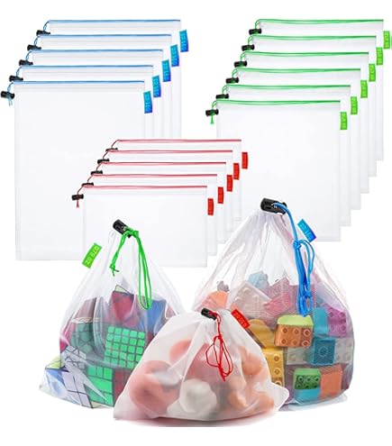 Utilisation polyvalente : ces sacs en maille réutilisables sont adaptables pour ranger et organiser divers articles tels que des jouets, des cosmétiques, des accessoires, des chaussures, des vêtements, du maquillage, du vernis à ongles, etc. Utilisez les sacs d'organisation de jouets pour collecter et ranger pratiquement tous les jouets, les pièces de jeux et les objets de bricolage qui sont éparpillés dans la maison ou dans l'aire de jeu. Ils permettent également de conserver la fraîcheur des fruits en raison de la respirabilité. En outre, ces sacs sont adaptés pour laver directement les produits et peuvent être facilement placés dans le réfrigérateur par la suite. Vous n'avez pas besoin de les ouvrir pour voir ce qu'ils contiennent. Rangement Sac Bergère De France Sac Rangement Fil à Tricoter 21x28cm - Poches Multiples - Design Citrouille/tournesol - Portable Sacs Pour Tricot Identification facile : les sacs en maille sont presque transparents, ce qui facilite la visibilité du contenu et vous permet de trouver rapidement ce dont vous avez besoin. Les cordons de serrage colorés et les étiquettes contribuent à une meilleure organisation. Marque. POHOVE · Couleur. blanc · Matériau. Polyester · Style. Mode · Type de fermeture. Cordon de serrage · Dimensions du produit. 30L x 42,5l x 42,5H centimètres Rangement Jouet Enfant Kare & Kind Sacs De Produits Réutilisables 15 Pcs - Sacs En Filet Lavables Multi-Tailles - Stockage écologique Sans Déchets Pour Les Légumes D'épicerie Fruits Jouet De Ménage Petits Articles Organisation Tiroirs Maison Remarque : La taille peut varier légèrement en raison des mesures manuelles. Mettez de l'ordre dans les jouets de bain, les jeux de puzzle, les bricolages, les jeux ou autres objets bizarres ; ces sacs peuvent être utilisés pour pratiquement toutes les formes d'organisation. Cet article est un lot de 12 sachets en maille, fabriqués dans un matériau de qualité supérieure pour un effet de stockage et une utilisation durable. Léger et facile à plier, il est pratique à transporter Les sacs en maille sont transparents et faciles à voir. Les coutures standard améliorées au bas assurent durabilité et résistance à la déchirure, améliorant leur longévité. Spécifications Matériau : Polyester Couleur : blanc Taille : Petit : 12 x 8 pouces Moyen : 12 x 14 pouces Grand : 12 x 17 pouces 12 x 17 pouces Quantité et tailles : le lot comprend un total de 12 sacs en maille, comprenant 3 petits sacs capables de supporter 4 kg (30,5 x 20,3 cm), 6 sacs moyens capables de supporter 5 kg (30,5 x 35,6 cm), et 3 grands sacs capables de supporter 6 kg (30,5 x 43,2 cm), offrant suffisamment d'options pour différents besoins de stockage.