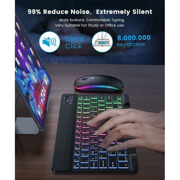 Le clavier et la souris disposent d'une fonction de pause automatique pour économiser l'énergie. 【Batterie rechargeable intégrée】: Le clavier sans fil est équipé d'une batterie au lithium rechargeable et vous n'avez pas besoin de changer la batterie fréquemment. Pourquoi ne pas avoir les deux ? : cet ensemble souris et clavier ultra-fin et portable, fabriqué avec du plastique recyclé, est léger, compact, et vous suit dans vos déplacements Le combo clavier et souris sans fil fin est disponible dans un choix de couleurs fraîches et assorties – fabriqué avec du plastique recyclé (1). Choisissez celui qui convient à votre ambiance Vous pouvez le réveiller en cliquant sur n'importe quel bouton. Ensemble Clavier Souris Sans Fil - Compatible iOS/Windows/Android 【Clavier et souris silencieux】: La souris Bluetooth est conçue silencieusement, le DPI est réglable et le DPI réglable est de 800/1200/1600., Le clavier Bluetooth adopte une structure de commutation à ciseaux pour offrir une expérience de frappe silencieuse, sensible et confortable. 【Connexion Bluetooth stable et fiable】 : la technologie Bluetooth 5., 0 avancée fournit une connexion stable, fiable et puissante, facile à connecter et à utiliser, sans se soucier du retard ou de la déconnexion, et la distance de travail peut atteindre 10 mètres. Clavier Sans Fil Logitech Ensemble Clavier Souris Sans Fil Ultra-Mince 2,4GHz Clavier AZERTY Silencieux 105 T Clavier Et Souris Ordinateur Après une seule charge, il peut être utilisé pendant un mois. Il est très adapté aux tablettes iPhone, iPad, iPad Mini, iPad Pro, iPad Air, Samsung Android, LG Windows et smartphones Taille du clavier : 25 x 15 x 0,6 cm, poids : 180 g