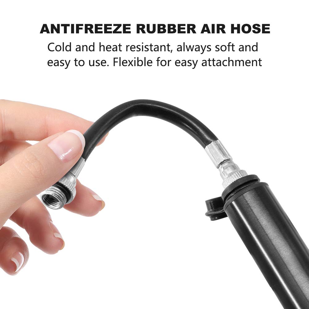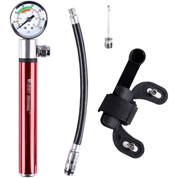 NEU] Mini Fahrradpumpe 80 PSI / Mini Pompe à Vélo 80 PSI (Neu und Pompe Presta Schrader Compacte Compresseur Auto,Mini Pompe à Air Haute Pression à Pédale,jouet Gonflable,pratique,pour Vélo Pompe Vélo 120 Psi Aluminium ACCESSOIRES PRATIQUES ET FACILITÉ D'UTILISATION : le tube extérieur flexible facilite la fixation de la valve et la poignée antidérapante permet de pomper sans fatigue. Spécification Matériau : alliage d'aluminium Couleur : noir/argent Poids : 55 grammes Capacité de haute pression de 120 PSI Contenu de la livraison 1 * Pompe à vélo 1 * Aiguille 2 * Vis 1 * Couvercle de valve 1 * Tuyau extérieur 1 * Support Joint « Super Fit » avec aiguille à air pour tous types de ballons, vélos, etc. Sa puissance vous permet d'économiser du temps et des efforts, ce qui la rend idéale pour les voyages ou les situations d'urgence. Mini Pompe à Vélo, Pompe à Air Haute Pression 120 PSI Pompe de Basket-Ball en Aluminium Léger Mini Bike Pompe Rétractable pour Presta Et Schrader Noir pour Vélo de Route, VTT et Ballon CONCEPTION ROBUSTE EN ALUMINIUM : la pompe est fabriquée en alliage d'aluminium usiné CNC de haute qualité, qui est extrêmement durable et résistant à l'usure. Mini pompe à vélo, petite et légère, facile à mettre dans votre sac à dos ou votre poche, et est très adaptée pour le cyclisme. · Fabriqué en alliage d'aluminium... COMPATIBILITÉ UNIVERSELLE : Le système à double valve s'adapte facilement aux valves Presta et Schrader sans qu'il soit nécessaire de changer d'adaptateur. HAUTE PERFORMANCE ET EFFICACITÉ : Avec une pression maximale de 120 PSI, cette pompe compacte assure un gonflage rapide et efficace des pneus de vélo, des ballons de basket, des ballons de football et bien plus encore.