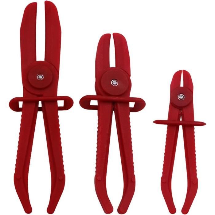 Jeu de pinces de serrage pour tuyaux, 3 pièces, poignée antidérapante réglable, pincer pour Pince Plastique Haute Température Antidérapante Pince De Serrage De Tuyau De Frein, Ensemble D'outils De Serrage De Tuyau Flexible Pour Tuyaux De Carburant, Conduites De Gaz, Tuyaux De Liquide De Refroidissement, Tuyaux De Radiateur 3 Pièces(Rouge Jeu Pinces Serrage Tuyaux Frein Carburant 【Utilisation Polyvalente】Ce jeu de pinces convient parfaitement pour l'entretien des conduites de frein, tuyaux de refroidissement et flexibles hydrauliques. 【Fonction de Serrage Sécurisée】La pince pour tuyaux souples est équipée d'une bague de sécurité permettant une fixation fiable à l'emplacement souhaité. 【Caractéristiques Pratiques】Grâce à ses couleurs rouge et bleu vives, cette pince est immédiatement repérable, ce qui la rend facile à trouver et évite les pertes accidentelles. EN STOCK : 6 Pièces pince durite refroidissement, Pinces Tuyaux Outil de Serrage, Jeu de Pinces de Serrage pour Tuyaux, Pince pour Tuyaux de Refroidissement, Conduites de Frein et de Carburant (Rouge Bleu), Dyk-FR00823 pas cher. Livraison rapide partout en France Ce matériau durable protège le revêtement intérieur des tuyaux et convient parfaitement aux ateliers, usines, artisans ainsi qu'aux bricoleurs et amateurs de DIY. Pince à durite - Top 10 de 2022 - Coparatif des eilleurs 【Jeu de Pinces Pratique】Vous recevrez 6 pinces pour tuyaux souples réparties en 3 tailles différentes : 155 mm, 185 mm et 250 mm. La fonction de verrouillage intégrée et la bague de blocage réglable assurent une manipulation aisée des tuyaux tout en évitant les dommages et les fuites de liquide.