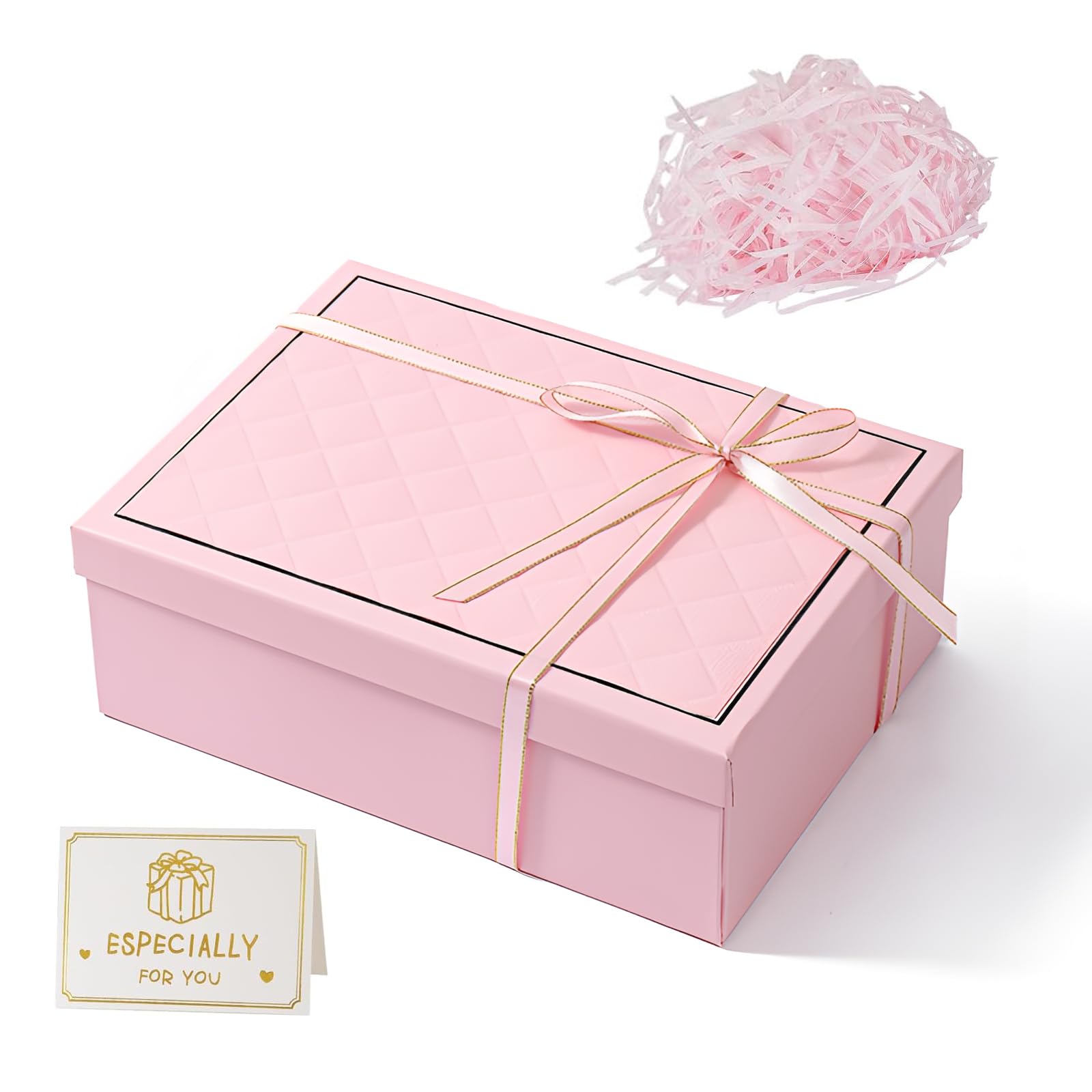 Taille Idéale – Assez Spacieux pour Contenir plus D'amour Dimensions de la Boîte : 25 × 18 × 8,5 cm – Convient aux bijoux, parfums, petits vêtements, objets artisanaux, etc. Ensemble Boite Cadeau, Coffrets Cadeaux Rectangulaires Polyvalents, 25 x 18 x 8,5 CM Boîte Cadeau Vide Pliable avec Couvercle et Nœud en Ruban Pour Mariage Anniversaire Noël Thanksgiving Rose A Style 4,5 (79) Offre Black Friday Description du produit MOSTFUN – Emballer Chaque Cadeau avec Cœur Avec la gamme d'emballages cadeaux exquise de MOSTFUN, nous nous engageons à offrir non seulement de la surprise, mais aussi de la chaleur à chaque cadeau. Les dimensions boite anniversaire sont de 25 x 18,5 x 2,4 cm avant assemblage et de 25 x 18,5 x 8,5 cm après assemblage. 【Nombreuses Utilisations】 – Ces boîte cadeau avec couvercle sont parfaits pour les anniversaires, les mariages, les anniversaires de mariage, Noël, les baby showers et les cadeaux de fête, ajoutant une touche de charme à toutes les occasions. Idéals pour les cadeaux de mariage, les cadeaux de fin d'année, les surprises d'anniversaire ou les cadeaux d'entreprise. 【Design Pliable】 – Ce boite cadeau vide est doté d'une structure pliable astucieuse qui permet un assemblage facile en quelques secondes et un rangement à plat pratique lorsqu'il n'est pas utilisé. Matériau de Qualité Supérieure] – Ce boite cadeau est fabriqué en papier couché épais de haute qualité, avec une finition mate et lisse... Nous sommes convaincus qu'un emballage de qualité est le point de départ d'une expression sincère. Idée Packaging Cadeau Boîte Cadeau Vide 25x18x8.5cm Avec Ruban - Emballage Cadeau Élégant Pour Toutes Occasions Boîte Cadeau Raphia Boite The TAIXING 2025 Nouveaux Boite Cadeau Anniversaire, Boîte Cadeau Vide Avec Couvercles, 25 X 18 X 8.5 Cm Boîtes Cadeaux Avec Ruban Raphia Carte, Boîte Cadeau Pour Mariages Valentin Noel Fête Boîte Anniversaire Mariage Noël Polyvalent pour Toutes les Occasions – Plein D'attention Que ce soit pour un anniversaire, un mariage, un anniversaire de mariage, Noël, la fête des Mères ou toute autre célébration, ce coffret cadeau exprime parfaitement vos sincères intentions, apportant chaleur et amour à chaque instant. Créez une Expérience de Déballage Époustouflante – Le Détail Compte Ruban Élégant : Ce ruban de satin, simple et élégant, ajoute une texture raffinée au coffret cadeau sans décoration supplémentaire et crée facilement une atmosphère de surprise. Matériau Rigide de Qualité Supérieure : Fabriqué en carton épais, robuste et résistant à la pression, il protège vos précieux cadeaux des dommages. Fournitures Détaillées : Chaque boîte est fournie avec des cartes de vœux et du papier raphia déchiqueté pour ajouter de la personnalité et de la chaleur à votre emballage. Convient à de Nombreux Scénarios : Convient pour les anniversaires, les mariages, Halloween, Noël, la Saint-Valentin, les cadeaux de fin d'année ou les demandes en mariage.