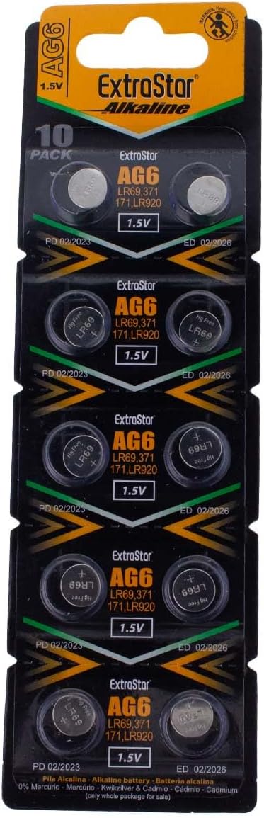 Leak-Proof & Corrosion-Resistant Steel Shell:Built with a high-strength steel casing and advanced electrolyte absorption technology for superior leak protection and safety. AG6 370 371 LR921 LR69 SR920SW LR920 Piles Bouton alcalines 1,5 V Lot de 10 Stable Performance & Extended Power:Maintains steady voltage output in low-drain devices, protecting circuits and reducing the hassle of constant battery changes. Piles Bouton Pile Sr 920 Sw Lot De 10 Alcalines PoundMax AG6 370 371 LR921 LR69 Renata 371 Sr920sw Pour Montre Blister 2 piles AG 6 LR69 LR921 371 Lot de 10 Piles bouton plates type AG6 1,5V compatibles 371A LR920 LR921 TR920 SR69 CX69 GP71 S21 - Visiodirect -. Piles. Remise 5% pour les adhérents Piles Appareils Médicaux Piles Bouton SR920SW 40 Pièces - Piles Alcalines 1.5V AG6 371 V371 LR920 Piles AG6 1.5V