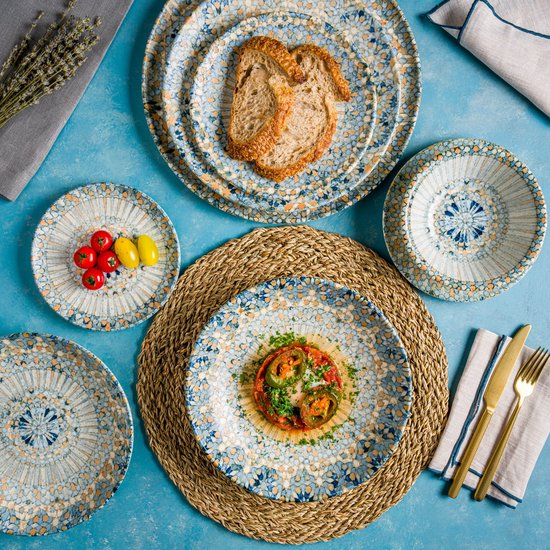 - Résistant aux chocs thermiques : nos produits sont durables contre les changements brusques de température et dans des conditions de température extrêmes dans la cuisine avec une surface émaillée dure et des matières premières de qualité supérieure. - Passe au lave-vaisselle : le secteur Horeca nécessite des cycles de service à nettoyage rapides. Bonna Assiettes - Lunar Ocean - Porcelaine - 22 c - lot de 6 Assiette plate ronde 27cm de la collection BONNA LUCA MOSAIC Motif LUCA MOSAIC en impression numérique Porcelaine de grande qualité pour les exigences élevées de la restauration haut de gamme Forte résistance aux chocs, aux rayures et aux changements de température - Résistant aux dommages causés par la glaçure : les rayures sont un problème courant dans le secteur de l'alimentation et de la restauration. Bonna Porselen Luca Mozaik 19cm Düz Tabak 6'lı Takım S-mt-lucmzgrm19dz Grâce à nos vastes efforts de R&D, notre technique de vitrage de pointe offre une résistance aux rayures de haut niveau dans tous nos produits. - Garantie Edge chip : L'ensemble de la gamme de produits Bonna identifiée par le « b » défie les normes les plus strictes et peut être utilisée pendant des années en répondant aux exigences de l'industrie Horeca. Assiettes Four Micro-ondes Lave-vaisselle Assiettes Pates Assiette à Pâtes Bonna - Futura - Porcelaine - 27 Cm 400 Cc - Lot De 6 Assiettes A Pates Vaisselle Professionnelle Résistante Notre processus de vitrage à haute résistance protège tous les produits Bonna dans un environnement de lave-vaisselle industriel hautement corrosif pour répondre aux besoins de cycle rapide. Bonna présente la collection LUCA audacieuse et affirmée, pour ceux qui recherchent un design pour accompagner l'harmonie surprenante et impressionnante des différentes saveurs qu'ils réunissent dans l'assiette. Lors de la conception de LUCA, nous nous sommes inspirés de pièces en mosaïque qui deviennent époustouflantes une fois assemblées et avons dédié cette collection aux chefs qui créent avec audace une mosaïque de saveurs en combinant différents goûts et odeurs.