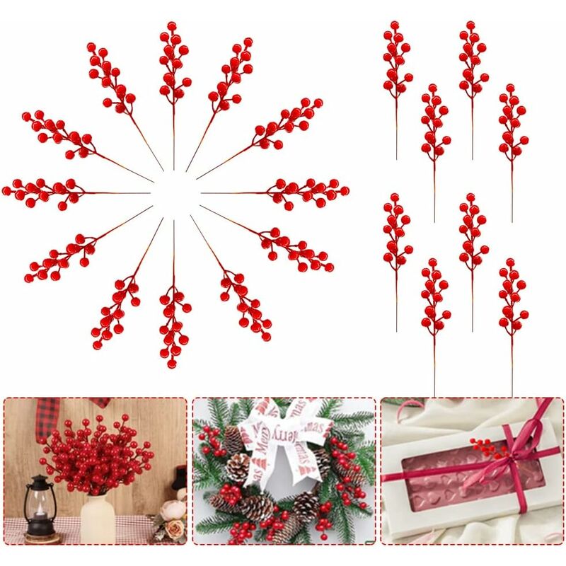Tige de brindille de fruits rouges de Noël x12 Ces brindilles de fruits rouges sont la décoration de fête parfaite pour les arbres de Noël, les guirlandes de Noël, les couronnes, la table à manger, l'emballage de cadeaux, les travaux manuels et plus encore. Parcourez notre sélection de tige de baies rouges : vous y trouverez les meilleures pièces uniques ou personnalisées de nos boutiques La longueur de la branche de baies artificielles est d'environ 33 cm et la largeur est de 0,3 cm. Polyvalent, idéal pour les artisans, Noël, les ornements de table à manger et la décoration. Matériau : ces branches de baies artificielles sont fabriquées à partir de mousse avec un revêtement rouge brillant et une tige en fil de fer. Ornement Couronne Sapin TRIXES Lot De 12 Tiges De Baies Rouges De Noël, Fleurs De Décoration Sapin Rouge Pack de 12 (rouge de Noël traditionnel et marron terreux pour un look naturel) Large application : décoration de fête parfaite pour les arbres de Noël, les guirlandes de Noël, les couronnes, les tables à manger, les emballages cadeaux, les travaux manuels et plus encore. Couleurs naturelles : les couleurs naturelles créent un aspect réaliste, apportant une décoration festive à votre saison d'hiver. Tige flexible et courbée. 12 branches de baies rouges artificielles pour loisirs 33 cm de longueur et 0,3 cm de largeur. Élégante couronne d'hver argentée et dorée, couronne de ponsetta avec baes de houx rouges... Son apparence saisissante lui permet d'ajouter une touche...