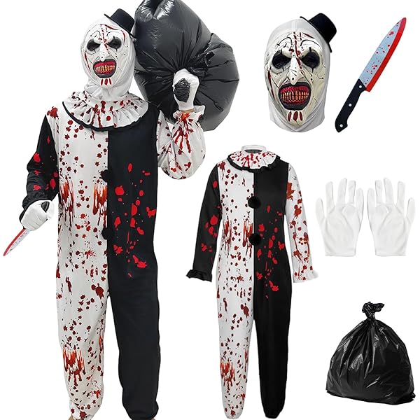 Art The Clown Costume I Tested The Art The Clown Jupsuit And Here's Why It's A Ust-Have For... Art Clown Costume Déguisement Halloween Horreur Coffee Life Plus Costume De Clown Terrifiant, Terrifier Art Masque Clown Effrayant 【Cadeau surprenant】Ce costume clown terrifiant est une idée cadeau pour surprendre amis et famille! Le paquet contient: 1 xCostume de Cl0wn Terrifiant 1 xMasque de cl0wn effrayant 1 xSac noir 1 xFaux couteau halloween 1 xGants blancs Veuillez permettre de légères erreurs de taille dues à la mesure manuelle. 【Design Effrayant et Réaliste】Ce costume de clown terrifiant inclut une combinaison noire et blanche, un masque de clown effrayant, des gants blancs, une faux couteau halloween et un sac noir, parfait pour inspirer la terreur. Embrace the twisted terror of Art the Clown with this officially licensed Terrifier-inspired costume. Become the nightmare of the night, dripping with horror and ready to paint the town RED 【Tailles】Disponible en tailles adultes (M, L, XL) et enfants (L, XL), ce costume de clown d'horreur s'adapte à toute la famille pour une panoplie de cauchemar en groupe. Le déguisement d'Art the Clown se compose généralement d'un costume en noir et blanc, avec des détails macabres tels que des taches de sang et des accessoires... 【Parfait pour Toutes les Occasions】Idéal pour Halloween, le Carnaval, les soirées costumées, les spectacles théâtraux, les fêtes sur le thème de l’horreur ou les événements cosplay. En raison des différents effets d'éclairage et paramètres du moniteur lors de la prise de vue, la couleur du produit sur l'image peut être légèrement différente de la couleur du produit livré.