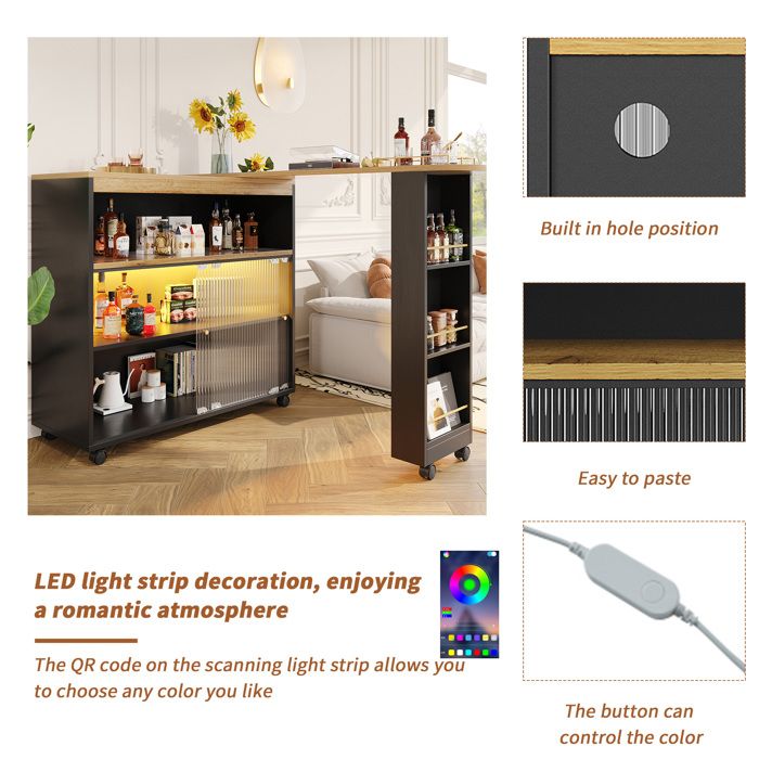 Bien plus qu'une simple table, il devient l'âme des moments partagés où se tissent complicité familiale et convivialité. Table de bar rotative à 360° (105 x 39 x 102 cm), avec 2 tiroirs, 3 niveaux de rangement ouvert, adaptée à la salle à manger/bureau. Vendu par Best 4 House Chaque détail redéfinit l'essence du foyer. L'alliance parfaite entre technologie émotionnelle (éclairage atmosphérique), artisanat d'exception (finition dorée, verre travaillé) et modularité intelligente. Personnalisez l'atmosphère (dîner romantique, apéro dynamique., ., ., ) d'un simple geste grâce à ses 16 millions de nuances disponibles., 4., Mobilité Intuitive Équipé de roulettes silencieuses premium, déplacez l'îlot d'une pièce à l'autre : → Transformez-le en bar d'appoint pour votre salon → Créez un bureau temporaire → Optimisez le nettoyage des sols Une liberté spatiale révolutionnaire., 5., Stockage Latéral Ingénieux Trois niches intégrées dans le piètement pour : Épices d'urgence Bouteilles de vin Ustensiles nomades Gain de place maximal sans compromis sur l'accessibilité. Table De Bar Extensible Avec Espace De Rangement, Table De Bar Extensible Avec Espace De Rangement Table De Bar Mobile Moderne Table De Bar Telescopique Avec Led Table De Bar Table De Bistrot Table Haute Ilot De Cuisine Table De Bistrot Grand Espace De Rangement Noir 138 204×39×105cm La magie opère au bout des doigts, sublimant vos instants de vie d'une poésie sensorielle. L'îlot-bar où chaque détail chuchote : la vie mérite d'être célébrée., 1., Dimensions Transformables Longueur réglable de 138 à 204 cm (largeur fixe 39 cm / hauteur 105 cm) pour s'adapter à toutes les configurations spatiales. Que ce soit pour un dîner intime ou une réception, cet îlet se métamorphose selon vos besoins familiaux ou festifs., 2., Rangement Scénographié Triple niveau d'organisation : Étage supérieur ouvert : accès instantané aux essentiels, Compartiments vitrés avec portes en verre irisé : protègent vos réserves tout en créant des jeux de lumière raffinés Une symphonie pratique et esthétique pour sublimer votre intérieur., 3., Ambiance Lumineuse Le tiroir central intègre un ruban LED chromatique. Polyvalence d'usage : → Îlot culinaire pratique → Bar d'appoint élégant → Bureau temporaire → Support de nettoyage mobile Son système de roulettes silencieuses permet des métamorphoses instantanées au gré de vos besoins. Îlot de Cuisine Mobile avec Plateau Extensible, Espace de Rangement et Poubelle – Design Fabriqué en matériaux nobles résistants aux taches et rayures, l'îlot conserve son éclat des années durant. Mobilité Intuitive Équipé de roulettes silencieuses premium, déplacez l'îlot d'une pièce à l'autre : → Transformez-le en bar d'appoint pour votre salon → Créez un bureau temporaire → Optimisez le nettoyage des sols Une liberté spatiale révolutionnaire