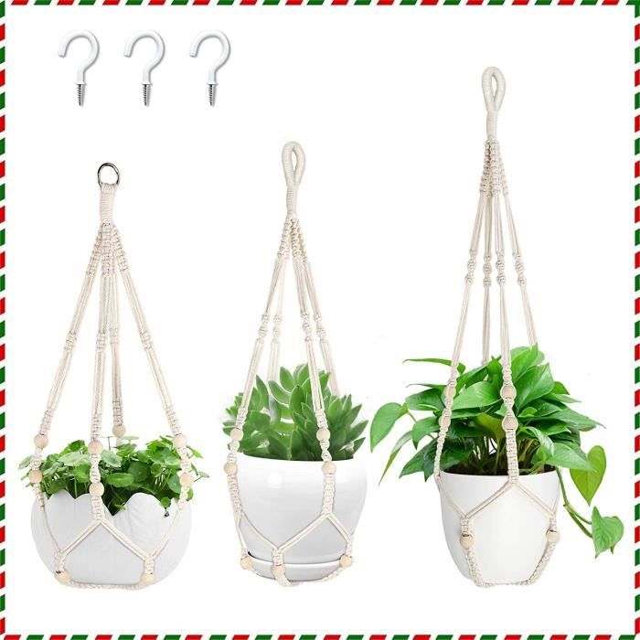 Contenu de l'emballage : lot de 2 cintres en macramé de différents styles bohèmes, parfaits pour présenter vos plantes d'intérieur ou d'extérieur préférées Les deux styles distincts offrent une variété dans votre composition de décoration, vous permettant de créer un affichage botanique cohésif mais intéressant. Craquez pour ce magnifique lot de 2 suspensions macramé pour vos plantes. À l'image d'un jardin d'intérieur, créez votre propre composition murale végétalisée et instaurez dans votre espace de vie un climat de calme et de sérénité. Faites le plein d'énergies positives grâce aux plantes d'intérieur Durables et résistants à la corrosion, ces supports pour plantes suspendues sont conçus pour durer. Leur design simple et raffiné s'harmonise avec différents pots de fleurs et met parfaitement en valeur vos plantes Design polyvalent : convient pour le balcon, le jardin et la décoration de la maison, ces cintres ajoutent une touche élégante à n'importe quel espace Suspensions en macramé pour plantes d'intérieur ou d'extérieur - Corde en coton A526 Matériau de qualité : fabriqué en corde de coton durable qui fournit un soutien fiable pour vos plantes en pot tout en conservant un attrait esthétique Options d'installation : facilement montable sur des crochets de plafond pour les espaces intérieurs ou extérieurs tels que les balcons et les patios Double suspension pour plante en macramé Grande jardinière suspendue d' intérieur Jardinière longue murale Support de pot Jardinière de plafond à 2 niveaux, décoration bohème et cadeaux pour les amateurs de plantes Que vous soyez un amateur expérimenté de plantes ou que vous commenciez tout juste votre voyage dans le jardin intérieur, ces cintres en macramé offrent une solution élégante pour afficher votre collection botanique à la mode bohème. Les cintres MSLSOZ présentent des motifs complexes de nœuds qui mettent en valeur vos plantes préférées tout en créant un affichage accrocheur. Parfait pour une utilisation en intérieur et en extérieur, ces étagères à plantes montées au plafond sont idéales pour les balcons, les terrasses, les salons ou tout espace qui pourrait bénéficier d'une verdure surélevée.