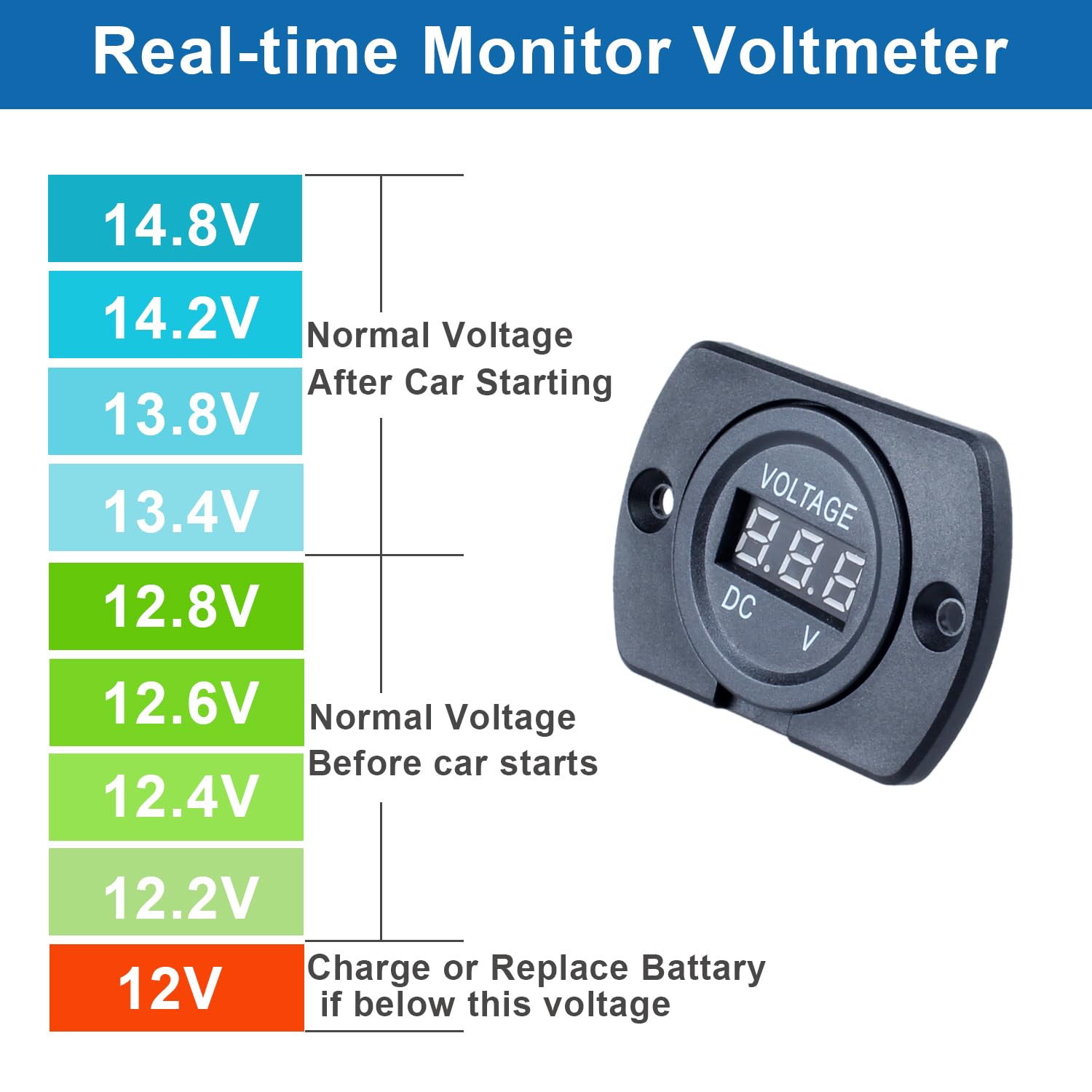 Caractéristiques: LARGEMENT UTILISÉ Ce voltmètre est utilisé pour surveiller la tension de la batterie de stockage et saisir en temps opportun l'état de la tension de votre batterie. Caractéristiques LARGEMENT UTILISÉ Ce voltmètre est utilisé pour surveiller la tension de la batterie de stockage et saisir en temps opportun l'état de la tension de votre batterie. Ce voltmètre à affichage LED est idéal pour vérifier la tension. ABS impermeable : Conçu en matériau ABS résistant à l'eau avec indicateur LED clignotant pour alerter efficacement en cas de surtension prolongée tout en assurant une durée de vie prolongée. Cela signifie que même si vous l'utilisez pendant longtemps, cela n'affectera pas son efficacité. Version améliorée] Kinstecks Moto Voltmètre DC 12V Numérique Voltmètre Jauge Facile a installer Ce voltmetre LED compact s'installe en seconde grace a son systeme de verrouillage par torsion sans outil requis pour une integration rapide et universelle Surveillance tension précision: Monitorage en temps réel de la tension batterie avec indicateur précis pour maintenir l'état optimal de votre système de stockage d'énergie. À propos de cet article Ce voltmètre mesure la tension continue avec précision de 8V à 19,9V. Mini taille avec affichage numérique LED à 3 chiffres. Dimensions: 2,2 `` x 1,1 '' x 0,4 '' / 5,6 cm x 2,8 cm x 1 cm, longueur du câble Voltmetre Digital Compact Voltmètre Numérique Universel à LED Pour Voiture, Moto, Bateau, DC 12 V Affichage De Jauge Accessoires~p142609740 Voltmètre Compact Tableau De Bord Il existe 3 couleurs d'indications pour afficher différents états de tension, ce qui permet de tester évidemment l'état de la batterie du véhicule et d'améliorer parfaitement la sécurité. Il est universellement adapté à la plupart des véhicules DC 12V, tels que les motos, voitures, bateaux, VTT, UTV, camping-car, caravanes , roulotte de voyage, etc. Le voltmètre clignotera constamment lorsque la tension est inférieure à 11,6 V. Largement utilisé pour les voitures, les motos, les vélos, l'automatisation des stations, l'automatisation de la distribution, les équipements de test, les régulateurs de tension, etc MATÉRIAU DURABLE Le voltmètre à affichage LED est étanche et durable pour une longue durée de service. Spécifications : Matériel: ABS Couleur: coque noire Tension d'entrée: DC 12V Plage de mesure de tension: 5 - 15V (affichage numérique bleu) Couleur de la LED: rouge (11., 3V-11., 9V), ambre (12V-12., 5V), vert (12., 6V-15V) Taille (L x P): 4,1 x 3,7 cm/1,61 `` x 1,46 '' Poids du colis: env. Description du produit Moto voiture LED affichage numérique voltmètre étanche tension voltmètre jauge noir 12 V, Pièces automobiles et motos Contrôle visuel intuitif: L'écran LED tricolore affiche clairement l'état de tension de la batterie permettant un diagnostic rapide et une amélioration de la sécurité routière.