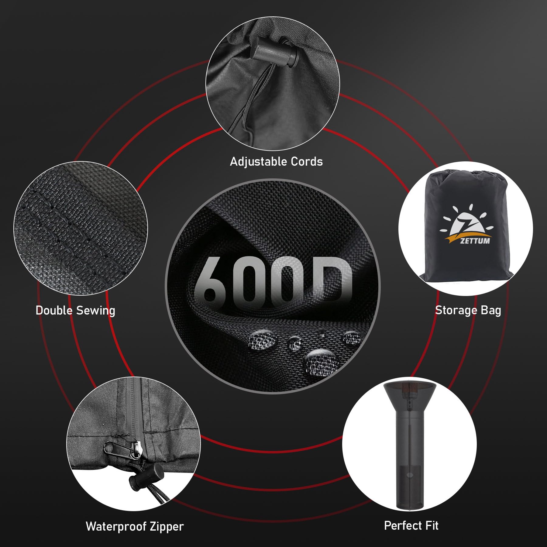 Entretien facile : le revêtement en PVC résistant à l'eau garantit que la housse est facile à nettoyer et à entretenir, gardant votre chauffage de terrasse comme neuf avec un minimum d'effort. Tissu Oxford 600D de qualité supérieure avec revêtement en PVC : fabriquée à partir de tissu Oxford 600D durable avec un revêtement en PVC imperméable, cette housse offre une protection supérieure contre les éléments, assurant que votre chauffage de terrasse reste en excellent état toute l'année. Fermeture éclair pratique : équipée d'une fermeture éclair latérale, cette housse permet une installation et un retrait faciles, facilitant un accès rapide à votre chauffage si nécessaire. Housse Imperméable Chauffage Extérieur Oxford 600D Housses De Chauffage De Terrasse 226x91x54 Housse De Chauffage D 600d Avec Fermeture Eclair Impermeable Robuste Housse Thermique Au Propane 85047863 Accessoire Jardin Durable La housse de chauffage de terrasse extérieur protège contre la pluie, la neige et autres éléments extérieurs. Facile à mettre et à enlever grâce à sa fermeture éclair sur toute la longueur, il couvre entièrement le dôme jusqu'à la base du radiateur Convient aux appareils de chauffage debout 241cm de hauteur x 86.5cm de diamètre, dôme x 47cm de diamètre, base ronde; Les coutures entrecroisées renforcent... onlyfire Housse pour Parasol Chauffant, Housses de Chauffage