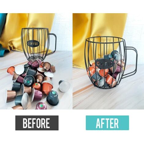 Contenu de l'emballage : 1 support pour dosettes de café EACTEL Dimensions : 15,5 x 14 x 10,5 cm., Matériau : fer., Couleur : noir. Méticuleusement conçu dans une forme unique de tasse à café en métal, très adaptée à l'utilisation et à la décoration liées au thème du café. Panier Fer Cuisine Bureau Panier Rangement Capsules Café - Forme Tasse Métal - Capacité 25 Capsules - Noir Porta Capsule Nespresso Fabriqué en fer de qualité supérieure avec peinture, cet organisateur de café de style vintage est solide et résistant à la rouille. Panier multifonction : non seulement l'organisateur de tasses peut être utilisé pour stocker des capsules de café, des dosettes de café. L'organisateur de station de café peut être un support de panier à fruits pour contenir des fruits de grande capacité Panier Café Fer Vintage Noir Porte Capsules Métal Panier Capsules Café - Rangement 60 Dosettes - Design Tasse - Métal Noir Panier Rangement Métal 65 Capsules Décoration Cuisine Grâce à la structure creuse de cette tasse à café, les articles ne moisissent pas car ils permettent une bonne circulation et restent facilement au sec. Fabriqué en fer de qualité supérieure avec peinture, cet organisateur de café de style vintage est solide et résistant à la rouille