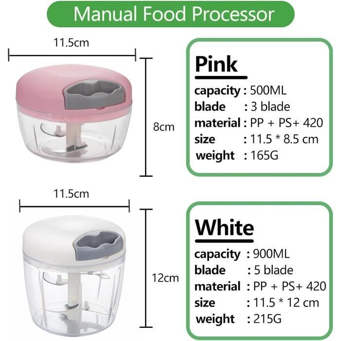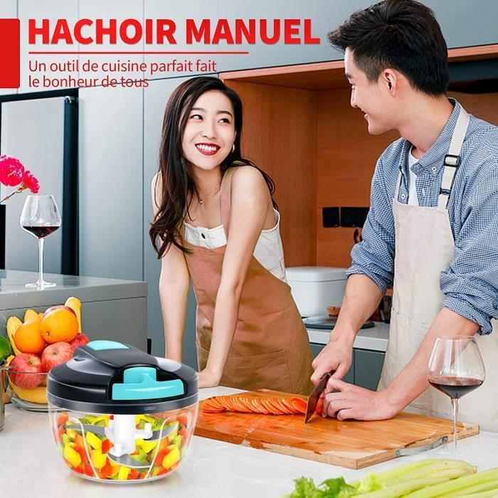 * Construction en acier inoxydable 304 : fabriqué en acier inoxydable 304 de haute qualité, durable et résistant à la rouille pour une utilisation à long terme. Le hachoir à oignons avec acier inoxydable 3 lames permet une coupe précise. Pour les fans de viandes, le hachoir à viande domestique et son kit de robot culinaire multifonctionnel sont un must-have. Pensez au hachoir à ail et à légumes pour une utilisation quotidienne simplifiée * Fonctionnement manuel : le design manuel permet une utilisation facile et pratique, pas besoin de compter sur l'alimentation électrique. * Numéro OEM : non fourni. 【Ustensile de cuisine multifonctionnel】 : ce robot culinaire manuel en acier inoxydable transforme votre expérience de cuisine domestique en hacher sans effort la viande, l'ail, les oignons et les légumes sans avoir besoin d'électricité, ce qui rend la préparation des repas plus rapide et plus pratique pour les ménages occupés. Hachoir Cuisine Sans électricité Hachoir Oignons Cdiscount Hachoir à Oignons Manuel - Coupe-Légumes Avec Corde, Lames Acier Inoxydable, Pour Viande, Herbes, Noix, Facile à Nettoyer Mini Hachoir Hachoir Tefal Manuel Caractéristiques : * Nom du produit : robot culinaire manuel multifonction en acier inoxydable 304., Matériau : acier inoxydable 304., *Taille : non renseigné. * Compatibilité : pour les aliments de cuisine à la maison – tâches de hachage. Nombre de pièces : 1., Contenu de l'emballage : 1 robot culinaire manuel *Couleur : argenté (couleur par défaut de l'acier inoxydable). Hachoir à Viande Manuel,500ML Mini Hachoir à Viande Manuel 3 Lames En Acier Inoxydable Facile Nettoyer Oignon Pour Herbes Persil Legumes Salade Fruit Bleu * Compatibilité haute universalité : oui. Ce hachoir à viande portable est largement utilisé pour broyer divers produits de viande, légumes et noix, y compris le porc, le bœuf, le poulet, les poivrons, l'ail, les cacahuètes, etc. Assemblage et démontage rapides pour un lavage pratique