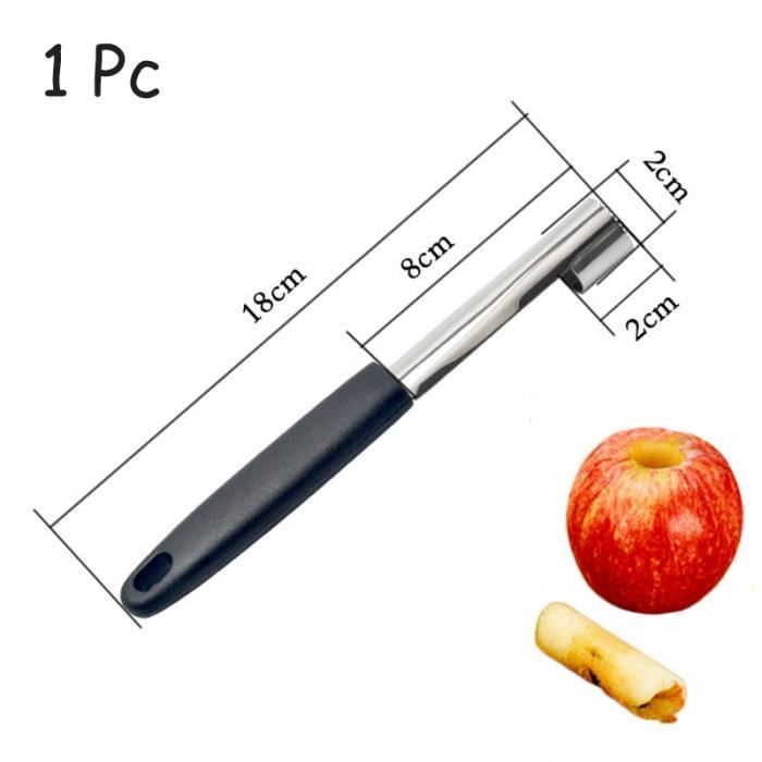 Large application : idéal pour les pommes, poires et autres fruits durs. Vide-Pommes En Acier Inoxydable, 2 En 1 Éplucheur De Fruits 2 cadeaux supplémentaires : 1 vide-pomme est livré avec 2 éplucheurs ronds en acier inoxydable qui aident à éplucher, trancher et vider en une seule opération en quelques secondes Caractéristique : lame tranchante pour un carottage facile, bouche ouverte pour lancer facilement le noyau. Taille : longueur 7,8 pouces, diamètre : 0,8 pouces Bon à savoir: L'acier inoxydable 430 de haute qualité est sans nickel, a une finition brillante et durable grâce à la teneur en chrome et offre une excellente résistance globale à la rouille et à la corrosion par rapport aux aciers inoxydables conventionnels - Accélérez votre cuisine et vos pâtisseries Matériau : fabriqué en acier inoxydable de haute qualité, facile à utiliser, facile à nettoyer et durera longtemps. Couteau De Vide Pommes Vide Pomme,Vide-Pomme En Acier Inoxydable Corer Trancheuse Coupe-fruits Du00e9noyauteur U00e0 Pomme Gadgets De Cuisine Pour Maison Cuisine Poires Poivrons Honeycrisp Gala Lady Pommes Denoyauteur Cerise Et Prune