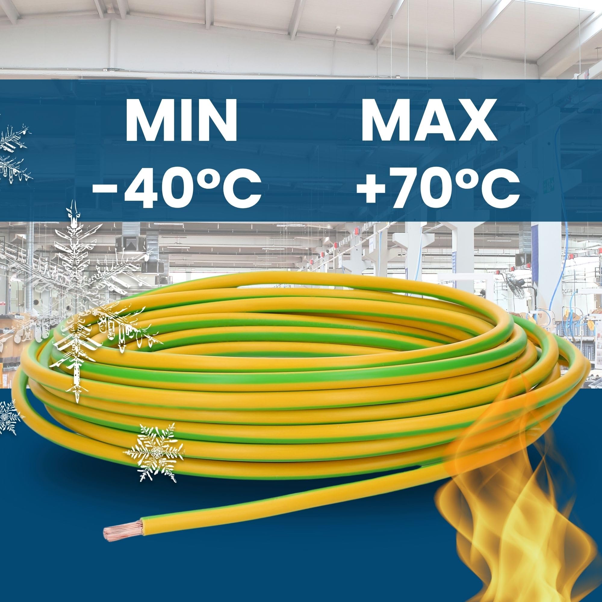 Câble électrique H07V-U SPEEDY - Nombre de conducteurs / fils : 1 Cable Electrique 6mm2 3 Fils HO7V-K 6 MM² Vert/Jaune| HO7VK Fil électrique De Terre Souple Câble De Terre 6mm2 Température de pose : de -5 °C à 70 °C Disponible en plusieurs longueurs. Qualité supérieure - 6 embouts de câble. CÂBLE RIGIDE – MISE À LA TERRE H07V-R – Proatex équipements industriels Câble conducteur H07V-K 6 mm² - Fil fin flexible Résistant aux UV. - Cable souple. - Norme BS EN 50525-2-31 (s'applique aux câbles unipolaires non gainés isolés avec une isolation thermoplastique (PVC). - Pour des tensions nominales jusqu'à 450/750 V.) - Prix à la bobine de 100 m 5 m, 10 m, 15 m, 20 m, 25 m, 30 m , Polyvalent. Par exemple pour les installations PV, les installations photovoltaïques, les installations solaires, les stands d'exposition, la mise à la terre d'appareils et de communication, les armoires réseau, etc.