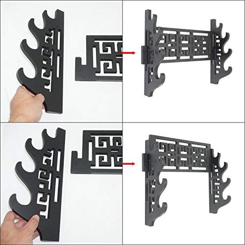 Motif creux vintage chinois, présentoir d'épée de samouraï décent. Description de Support mural pour épées de samouraï à 3 niveaux en bambou pour Katana Wakizashi Genji Support mural pour épée de samouraï à motif creux vintage chinois Conception creuse entièrement noire, support mural d'affichage d'épée de samouraï décent. Pour katana, wakizashi, épée médiévale et autres épées standard. Surface lisse et performances exquises en matière de résistance aux matériaux, haute résistance, pas de décoloration, l'apparence solennelle montre l'esprit samouraï. MATÉRIEL - bois compacté, la tête d'animal en relief tridimensionnel en alliage symbolise la bonne chance et la bonne chance. Assez robuste pour contenir des épées de samouraï courantes Instruction Installez le support inférieur : Enfoncez deux cales en bois dans DEUX trous des deux côtés. SHULI Support pour épée de samouraï japonais, couteau katana, Wakizashi Tanto, support d'épée de L'épée n'est pas incluse, juste pour votre référence. La tête d'animal en relief tridimensionnel en alliage symbolise la bonne chance et la bonne chance Spécifications techniques : Matériau : bois., Couleur noire. Accrochez le porte-épée : Il y a deux trous à l'arrière du support où vont les clous une fois que vous avez mis les vis., dans le mur. 2 Pièces Supports Katana Muraux Bois avec Rembourrés Porte-Épée Samouraï avec Kit de Montage pour Katana Wakizashi Rapière Light Saber Cosplay Présentoir Épée Déco Tanjirou Demon Slayer Weapon Rack Faits saillants principaux Montage Facile avec Accessoires Fournis: Le support sabre mural s'installe en quelques minutes Présentoir épée Bois Noir Motif Creux WEII Support D'épée Mural Pour Katana Samurai Wakizashi Tanto Art Déco Présentoir épée Bois Noir 3 Niveaux Installez le barre supérieure : Insérez les vis montées dans les trous et vissez simplement un capuchon pour les maintenir en place.