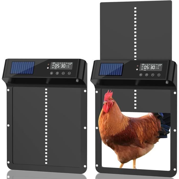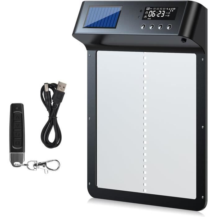 Livrée avec une porte télécommande utilisable jusqu’à 200 m, elle offre un contrôle pratique et sécurisé en toutes saisons. Porte Automatique Poulailler Solaire, TUYA App Montre l'état en Temps réel, reconnection WiFi, avec écran LCD, 4000mAh Alimentation par Batterie, Capteur de Lumière et Minuteur, télécommande : : Commerce, Industrie et ScienceRetours & garanties légales Ouvrez/fermez votre porte poulailler automatique à distance, surveillez l’état en temps réel et protégez vos poules où que vous soyez. ✅ Wi-Fi Auto-Reconnect & Résistance au Froid: La porte de poulailler automatique se reconnecte automatiquement au Wi-Fi toutes les 30 minutes en cas de coupure (2,4 GHz). Une porte poulailler durable, stable et pensée pour tous les climats. Fonctionne parfaitement jusqu’à -15 °C, idéale pour l’hiver. 🛡️ Protection anti-accrochage sécurisée – poulet automatique : ce poulet automatique protège vos poulets de manière fiable. Porte Automatique Poulailler Solaire,Porte Poulailler Avec Affichage Led Capteur De Lumiere Telecommande Commande De Minuterie Ipx3 94528868 Vos poules restent protégées, quelles que soient les conditions. Parfait pour un poulailler moderne, pratique et sécurisé. Convient à tous types de poulaillers. Elle alimente votre porte automatique de poulailler pendant plusieurs semaines, même par temps couvert ou en hiver. ☀️ Recharge solaire pour une porte automatique de poulailler qui protège vos poules et canards toute l'année Porte De Poulailler Programmable Avec Minuteur Clapet Solaire Automatique Contrôle Par Application, WiFi, Avec écran LCD, Porte Automatique Pour Poulailler, Minuterie Et Capteur De Lumière, Trappe électrique Automatique Avec Télécommande, 5 Modes Porte Poulailler Intelligente App Télécommande Cette porte automatique poulailler solaire combine lumière naturelle et réglages manuels pour un contrôle optimal et simple à utiliser.