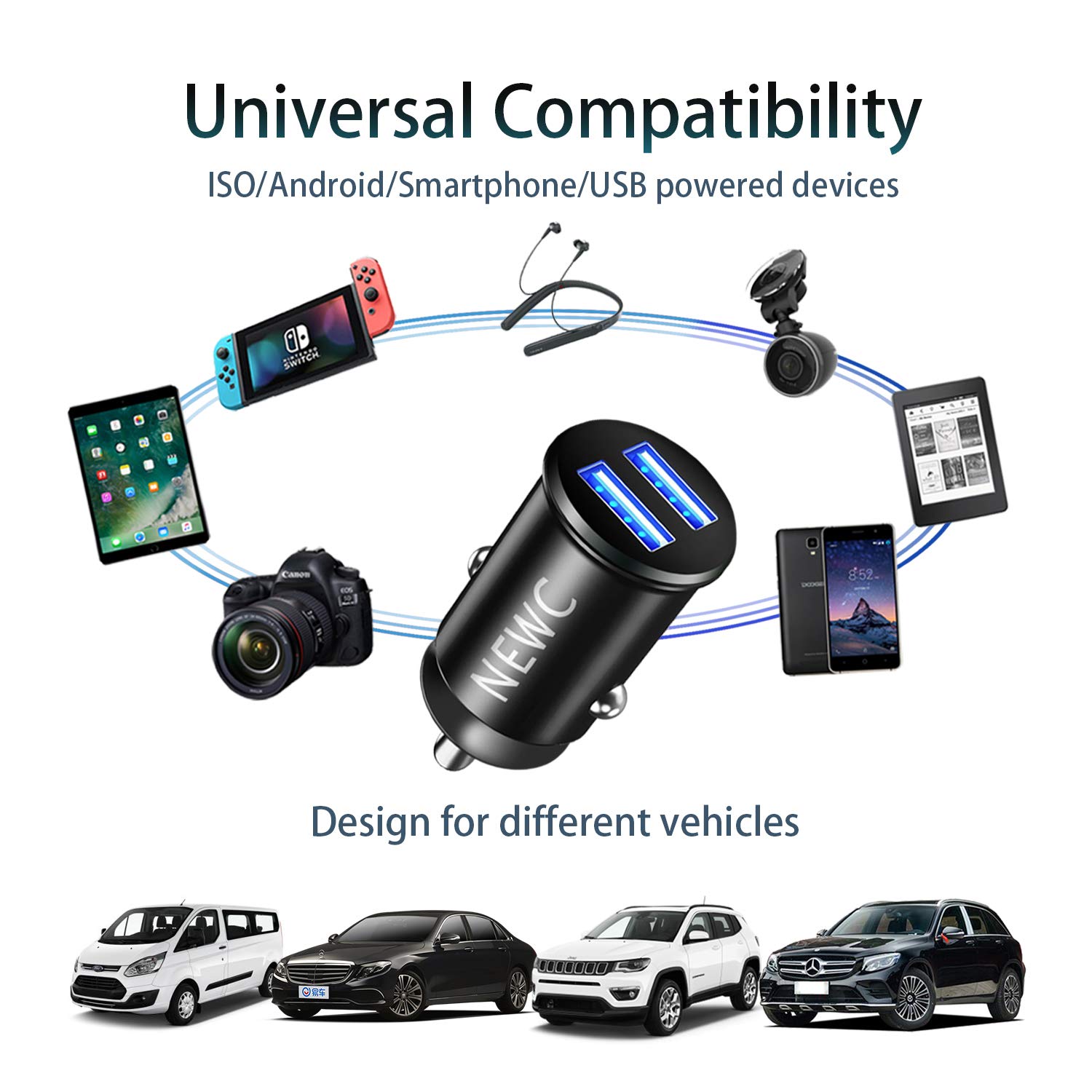 Chargeur Allume-cigare Double Usb Support Téléphone Voiture MOVKZACV - Chargeur Double USB 2 En 1 Réglable 360° Support Réglable 360 Chargeur Double Port USB : Cette prise cigare voiture dispose de deux ports de charge USB pour alimenter simultanément les appareils du conducteur et du passager Ce chargeur de voiture compact et puissant (35W) se branche sur l’allume-cigare et vous permet de recharger plusieurs appareils simultanément grâce à ses 2 ports USB et son port USB-C. Chargeur USB allume-cigare 3 en 1 câble en spirale : le chargeur portable de voiture est fabriqué avec un câble en spirale unique qui comprend 18 W câble de type C charge rapide, le câble iPhone et le câble micro USB Chargeur Usb C BM-003 5V / 1A 2 Noir Ports USB & 2 Chargeur De Voiture De Douilles De Cigarette Allume Cigare Puissance totale : 35W Ports disponibles : 2 × USB-A (USB2., 0) 1 × USB-C (Power Delivery) Design compact et élégant, facile à transporter