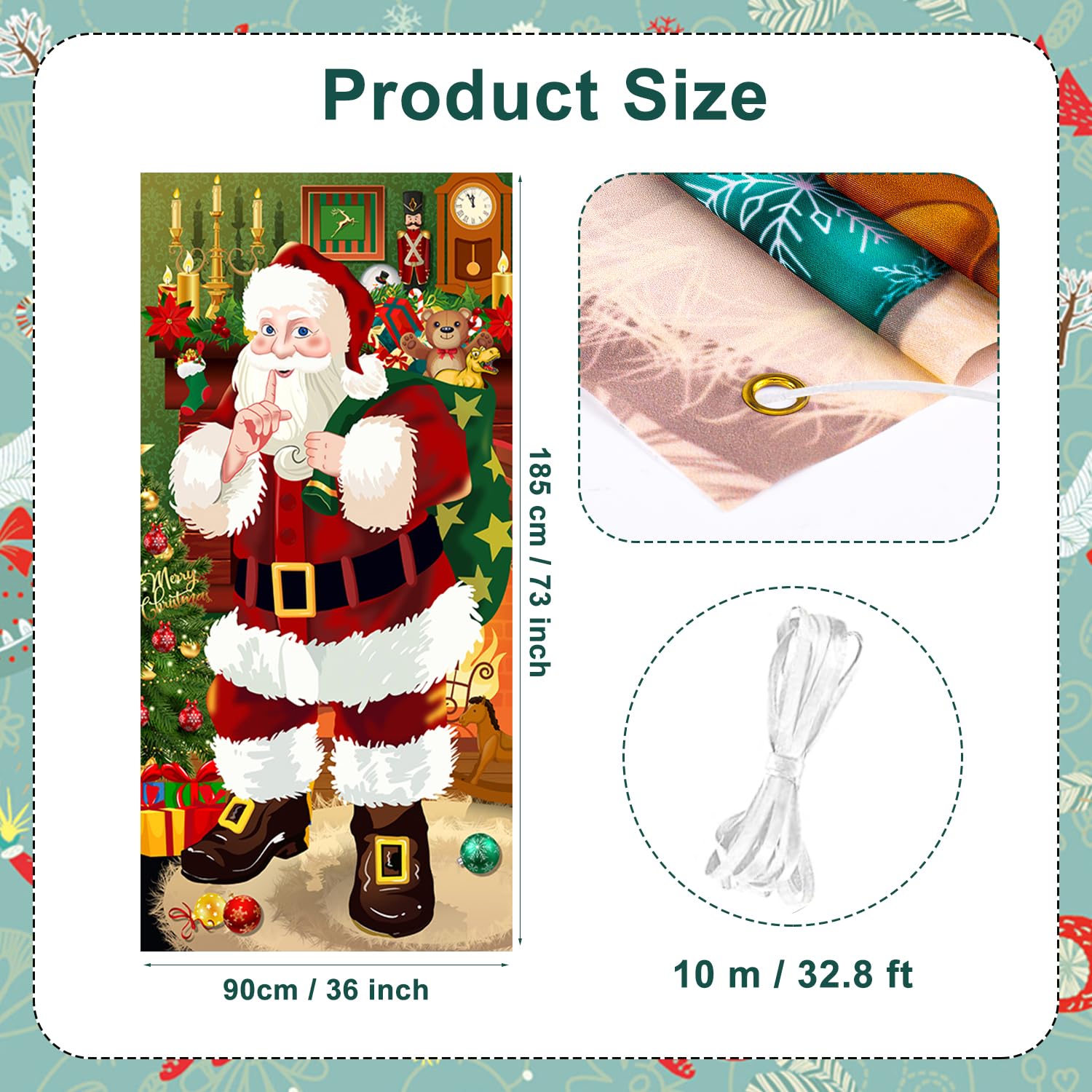 LUYANFX Couverture de Porte Noel, 180 x 90 cm Suspendue Bannière de Porte de Noël Décoration Toile de Fond de Noël, Joyeux Noël Bannière de Porte pour Décoration Vacances Hiver Noël et Nouvel - Mesure manuelle, veuillez permettre une petite erreur de taille. Toile De Noel LUYANFX Couverture De Porte Noel, 180 X 90 Cm Suspendue Bannière De Bannière Suspendue Joyeux Noël Décoration Matériau : tissu polyester. 【Design amusant】 : notre couvre-porte de Noël est conçu avec une scène amusante aux couleurs vives et des expressions faciales vives, l'ensemble de l'image est rempli d'une atmosphère à la fois festive et amusante. 【Applications larges】 : la bannière de décoration de Noël idéale pour les décorations de maison ou de bureau, connue pour les fêtes de Noël, le réveillon de Noël, le réveillon du Nouvel An et les fêtes d'hiver, adaptée aux activités intérieures et extérieures pour ajouter un look festif à votre maison ou bureau ; Mais peut également être utilisé comme accessoire de photographie de Noël pour prendre des photos avec votre famille ou vos amis et vous aider à créer une atmosphère heureuse. Fichier Psd De Modélisation 3d De La Porte De Noël | PSD Premium DECOR DE NOEL Couverture de Porte Noel, 180 x 90 cm Suspendue - Il peut y avoir des plis dans les banderoles, veuillez les repasser soigneusement. 【Matériau de haute qualité】 : notre toile de fond de décoration de Noël est fabriquée en tissu polyester de haute qualité, difficile à décolorer et à casser, légère et pratique à transporter et à accrocher, la surface lisse est lavable, elle peut donc être utilisée et stockée pendant une longue période., temps. Inclus dans la livraison : 1 x couvre-porte de Noël., 1 x corde.