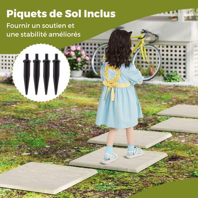 Leur résistance durable en fait le choix parfait pour décorer et équiper votre jardin en toute saison. Avertissement De Sûreté Attention : Desserrer le sol avant l'installation. Stabilité et sécurité avancées : avec 32 piquets de fixation stables et des surfaces antidérapantes texturées, ces pavés offrent une solidité exceptionnelle. Il résiste également à la décoloration au soleil et aux fissures pour une durabilité accrue. Grille d'allée de jardin, pierre, gravier, pente, allée, terrasse, allée, stabilisateur de sol, base de pavé, contrôle de la boue 3 x 10 m 1 mode d'emploi (français non garanti). Dimensions de chaque marche : 39,5 x 39,5 x 2 cm (L x l x H). Mesurant 39,5 x 39,5 cm chacun, ces tuiles de jardin légères sont conçues efficacement pour créer des chemins visuels, ajoutant structure et sophistication à votre pelouse ou cour Harmonie totale avec l'environnement : avec un aspect naturel de pierre, ces pavés s'intègrent parfaitement dans n'importe quel aménagement de jardin. 8 raisons de choisir nos sols en polypropylène 32 piquets pour une meilleure adhérence et stabilité. 2) Assurez-vous que le sol est de niveau pour un placement stable. Poids net total : 6 kg. Faites attention aux points aiguisés des piquets lors de l'installation et du retrait. Design léger et facile à installer. L'extérieur en pierre s'intègre parfaitement dans l'environnement extérieur. Promo Agrafes Métalliques Pour Fixation Au Sol H20 X 25 Cm chez Outiror... Créez des chemins visuellement attrayants : chaque pavé, d'une taille de 39,5 x 39,5 cm et d'un design léger, vous permet de créer des chemins clairs et élégants dans votre jardin. Dalles Polypropylène Antidérapantes LIFEZEAL Dalles Avec Piquets De Sol 39,5 X 39,5 CM, Pierres Décoratives Dalle Terrasse Exterieur Beton Caractéristiques : Couleur : beige. Gardez vos chaussures propres même sous la pluie. Assurez-vous que le sol est nivelé. Appuyez fermement sur les piquets dans le sol pour une stabilité sûre. L'installation est simple : fixez simplement les 4 piquets de terre à la base de chaque pavé, appuyez sur le sol pour obtenir une surface sûre et antidérapante. Dimensions de chaque piquet de terre : 2 x 9 cm (diamètre x hauteur). Utilisez un tissu non tissé anti-mauvaises herbes pour éviter la croissance indésirable. Il suffit de fixer les 4 piquets robustes au bas de chaque pavé et de les presser dans le sol. Description du produit Description du produit : Améliorez l'esthétique et la fonctionnalité de votre jardin avec nos pavés décoratifs pour allées. Remarque : 1) Desserrez préalablement la terre de pelouse pour améliorer l'efficacité de l'installation. Adaptés à tous les climats : fabriqués en polypropylène de haute qualité et résistant aux intempéries, ces pavés extérieurs sont invulnérables à la décoloration, aux fissures et aux dommages causés par le soleil. Méticuleusement fabriqués en matériau PP résistant aux intempéries, ils résistent à la décoloration, aux fissures et aux dommages causés par le soleil pour plus de durabilité en extérieur.