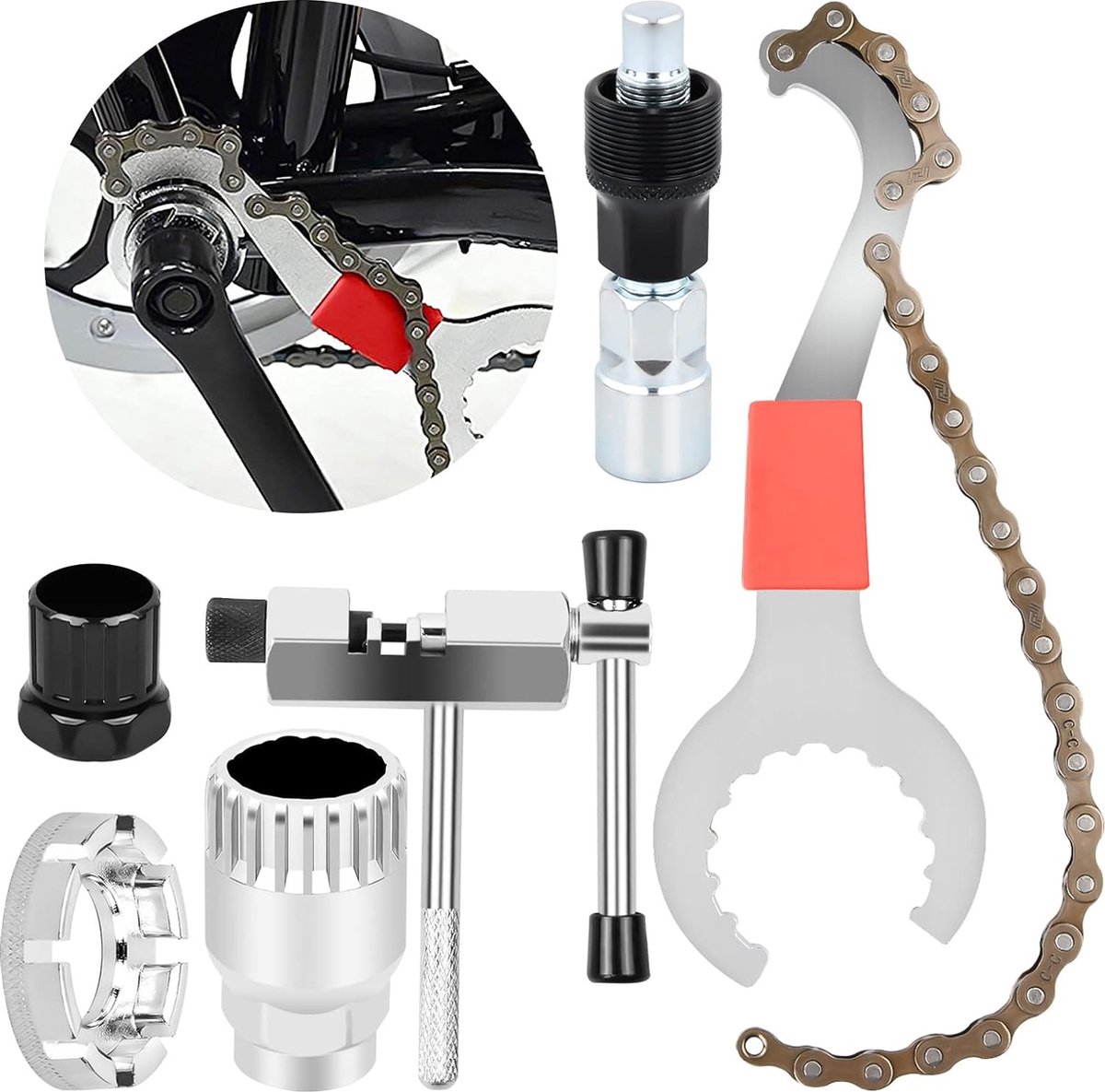 Outil Démontage Cassette Vélo Fouet Chaîne 2 Outils Blocage Roue Libre L'outil de rupture de chaîne de vélo est parfait pour un retrait et une installation rapides et précis des goupilles de chaîne, ce qui rend l'entretien du vélo facile Fabriqué en acier inoxydable, le filetage fin et la taille confortable permettent un retrait facile, même pour les goupilles les plus résistantes. Outil universel pour les vélos:S'adapte à tous les types de boîtiers à 20 dents, idéal pour les cyclistes de tous niveaux. Conception ergonomique et pratique... Outil Vélo Noir Portable Réparation Vélo Route Oumers - Outil Réparation Chaîne Vélo 7-10 Vitesses - Coupe Et Remplace Les Rivets - Pour VTT Et Route Accessoire Réparation Vélo Accessoire Entretien Vélo Pour Rivets L'outil de séparation de chaîne de vélo est très intelligent, facile à casser, le kit de chaîne de vélo de vitesse et l'extracteur de rivet de chaîne de vélo sont faciles à re-chaîner.