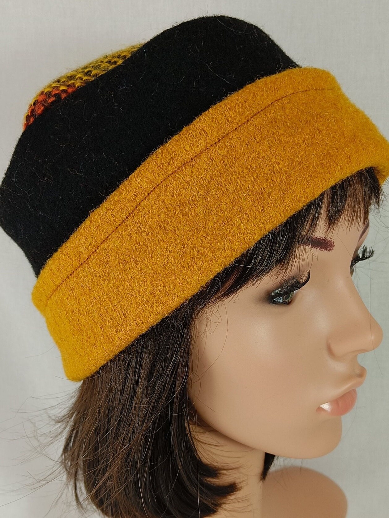 Bonnet Large Bandeau Chapeau Anais Jaune Moutarde-gris-noire.Chapeau Femme. Bonnet D'hiver. Toque En Laine Bouillie Accessoire Tête Chaud élégant Vente en ligne de chapeaux, casquettes et bonnets en laine bouillie. Collection homme et femme à découvrir sur la boutique en ligne Traclet Des chapeaux en laine bouillie pour ajouter une touche de fantaisie à ta vie. 29€ pièce · Bonne année à tous ✨ Un énorme merci du fond du cœur... Toque Zorah en quelques points : - Forme : Toque - Matière : Laine Bouillie - Saison : Automne - Hiver - Chapeau Femme - Large bandeau en laine - Fabriqué en Italie, Laine bouillie, Fermeture : À enfiler Toque Olga Turquoise et Marine - Chapeau femme souple