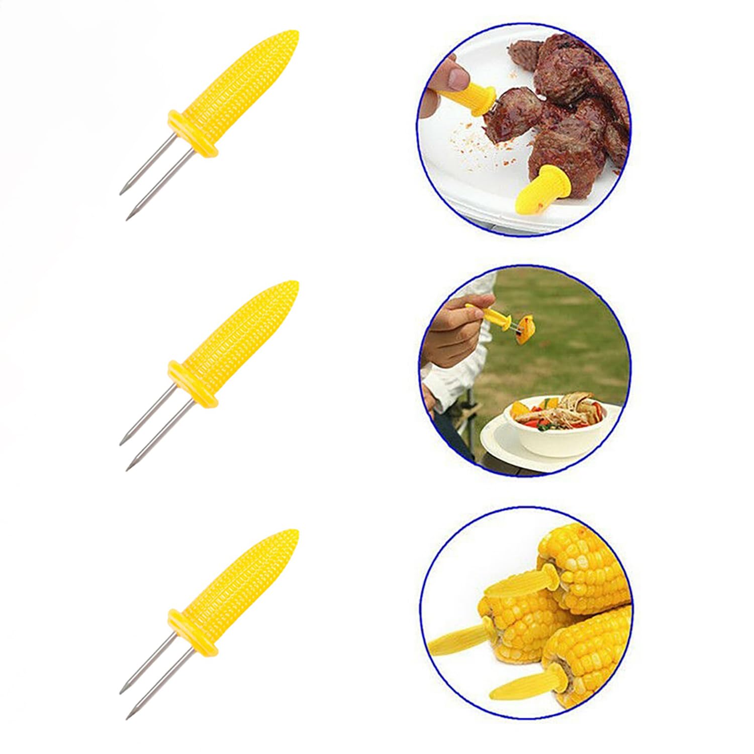 Contenu De L'emballage : Le Paquet Contient 8 Pinces À Épis De Maïs : 1 Paire Jaune, 1 Paire Orange, 1 Paire Verte Et 1 Paire Bleue. Conception De Haute Qualité : Chaque Pince À Épis De Maïs Est Équipée De Deux Fourchettes En Acier Inoxydable. Grâce À Leur Conception Emboîtable, Le Rangement Est Pratique Et Sûr Savourez Du Maïs Sucré À Votre Guise. Après Utilisation, Il Est Recommandé De Les Jumeler Et De Les Ranger Dans La Cuisine Pour La Prochaine Utilisation. Pour Répondre À Tous Vos Besoins. Pinces à Maïs BBQ 8 Pièces Supports Pour Épis De Maïs,Brochettes Pour Barbecue,Broche Accessoire Barbecue Camping Pique-nique Matériau De Haute Qualité : Nos Pinces À Épis De Maïs Sont Dotées De Poignées Ergonomiques En Silicone, Isolées Thermiquement Et Anti-Brûlure, Pour Une Prise En Main Plus Confortable. Facile À Utiliser : Toutes Ces Pinces À Épis De Maïs Sont Faciles À Saisir. Insérez Simplement La Fourchette Dans Les Deux Extrémités Du Maïs Pour Le Serrer Fermement Et Savourer Le Maïs Sucré. Les Deux Fourchettes Sont En Acier Inoxydable, Antirouille Et Faciles À Nettoyer. fiXte® Lot de 8 brochettes de maïs pour barbecue,Brochettes de Grâce À Leur Conception Emboîtable, Le Rangement Est Pratique Et Sûr. Lot de 16 paires de supports pour brochettes d'épis de maïs...