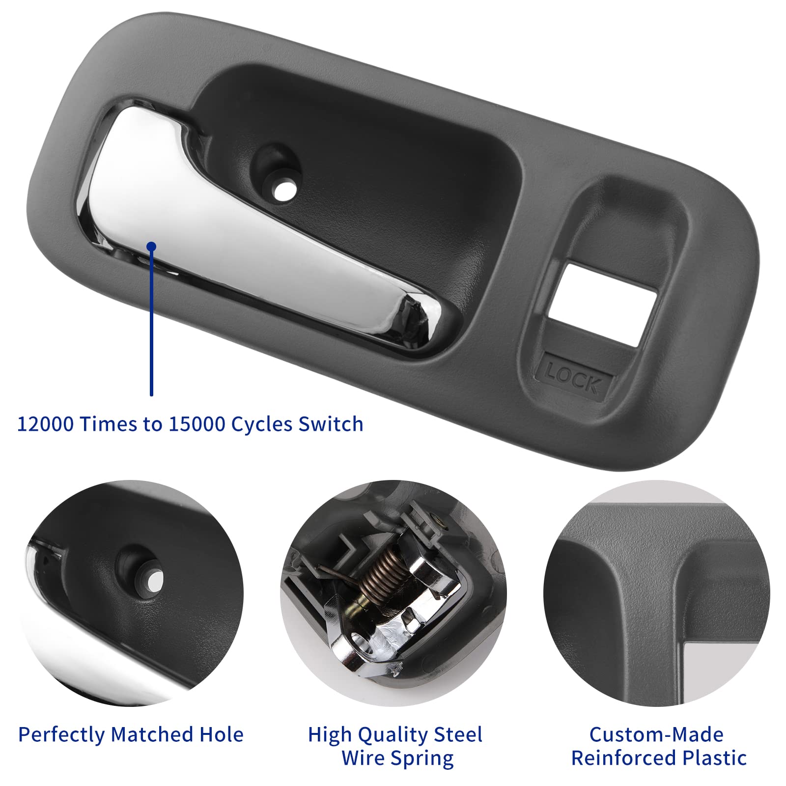 Avantage du design structurel : dispose d'une poignée profilée qui s'adapte à la structure de la porte pour un placement naturel de la main et une uniformité visuelle, contribuant à une apparence uniforme de la cabine Contenu de l'emballage : 1 poignée de porte intérieure avant arrière gauche. Kacepar Poignée de porte intérieure de voiture compatible avec Honda CR-V EX LX 1998 1999 2000 2001 72164S10A11ZA 72664S10A11ZA avant arrière droite Les produits de catégorie Poignée intérieure et extérieure Honda CR-V : quelle marque de pièces de rechange est la meilleure ? Selon nos clients, les meilleurs produits de catégorie Poignée de coffre arrière et avant Honda CR-V sont fabriquées par les marques de pièces auto suivantes Référence OE : remplace les numéros de pièce 72164S10A11ZA, 72664S10A11ZA, 72624S10A11ZA, 72124S10A11ZA, 72164SX0003ZB, HO1352139, 72164S10A111ZA. Poignée de porte HONDA CR-V intérieure et extérieure ZAP,82 216,72624-S10-A11ZA,HD007,EOQ-WW-48181,72124SX0003ZB,72124SX0003ZE,72124S10A11ZA,HO1353139 Matériau de qualité : fabriqué à partir de matériau ABS avec une épaisseur et une résistance constantes, résistant à la déformation due à la pression de la main et assurant un ajustement intérieur à long terme Référence Oe 72164s10a11za 72664s10a11za Poignée De Porte Intérieure De Voiture Poignée Remplacement Honda Odyssey Restauration des fonctions au quotidien : le remplacement d'une poignée usée ou manquante restaure un accès intérieur pratique et un contrôle de verrouillage, permettant au conducteur et aux passagers d'ouvrir ou de fermer la porte en douceur de l'intérieur Caractéristiques : Nom du produit : poignée de porte intérieure., Matériau : ABS. Compatibilité (modèles avec conduite à gauche uniquement) : Compatible avec Honda CR-V EX 1998-2001 Compatible avec Honda CR-V LX 1997-2001 Compatible avec Honda CR-V SE 2000-2001., Compatible avec Honda Odyssey EX 1995-1998 Compatible avec Honda Odyssey LX 1995-1998 Remarque : veuillez vérifier les détails du modèle de votre voiture et le numéro OE exact pour confirmer si cet article est compatible.