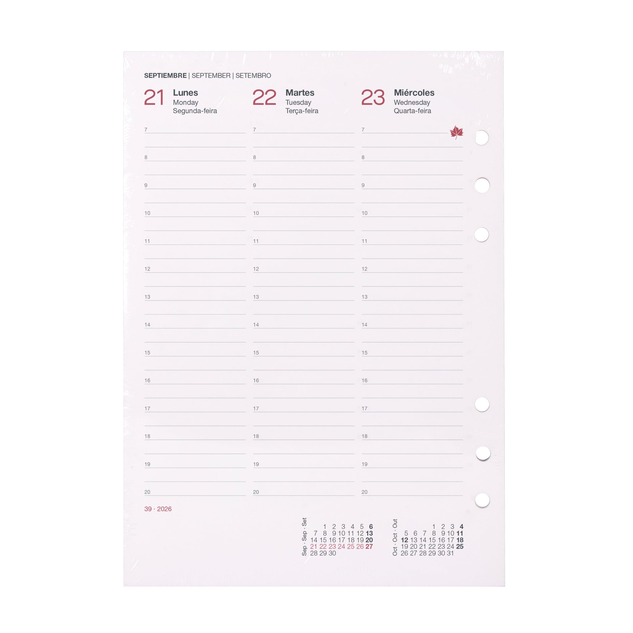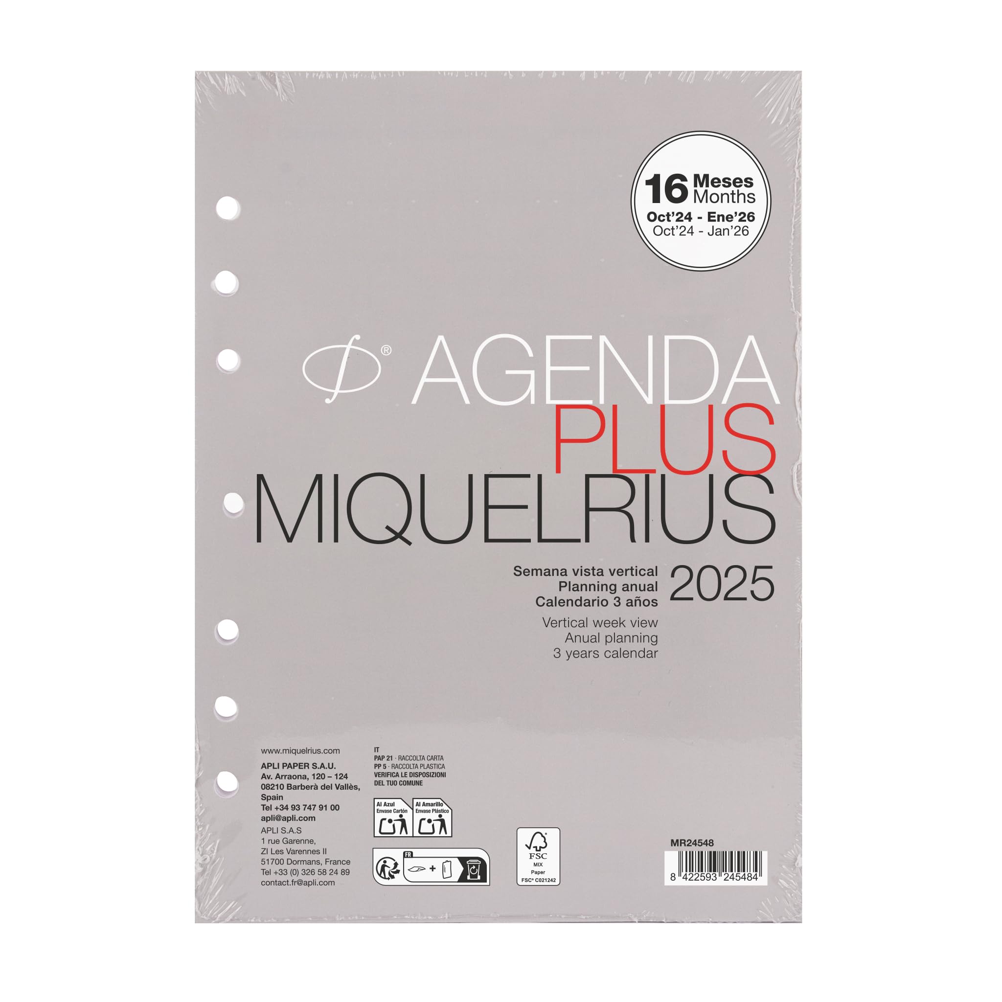 Miquelrius Recharge agenda 2026 à anneaux, 16 mois, 1 jour par page, format A5 élargi (155 x 213 mm), planification intérieure journalière remplaçable à 6 anneaux, espagnol EN-PT Langue recharge agenda : espagnol, anglais et portugais. Recharge Agenda Miquelrius MIQUELRIUS Agenda Septembre 2022 Décembre 2023 Vue Hebdomadaire Taille Plus 15 X 21,3 Cm Recharge Calendrier 2026 Comprend des calendriers sur 3 ans, un planning mensuel, des jours fériés en Espagne et au Portugal, des icônes en vedette et des feuilles pour les notes, adresses et données personnelles. Pages de notes, feuilles d'adresses et fiche de données personnelles. Papier durable de haute qualité avec 80 g/m² et certifié FSC, l'intérieur offre une surface lisse, opaque et durable pour une expérience d'utilisation soignée. Recharges et accessoires agendasRecharge agenda QUOVADIS Timer 29 prestige 21x29.7cm - 1 semaine sur 1 page NOTES - VERTICAL Miquelrius - Agenda annuale 2024 Custodia, settimanale, vista verticale, dimensioni Plus, 155 x Dimensions de la table : plus 155 x 213 mm (A5). Comprend les jours fériés espagnols et portugais. Compatible avec les agendas Miquelrius format plus (155 x 213 mm).