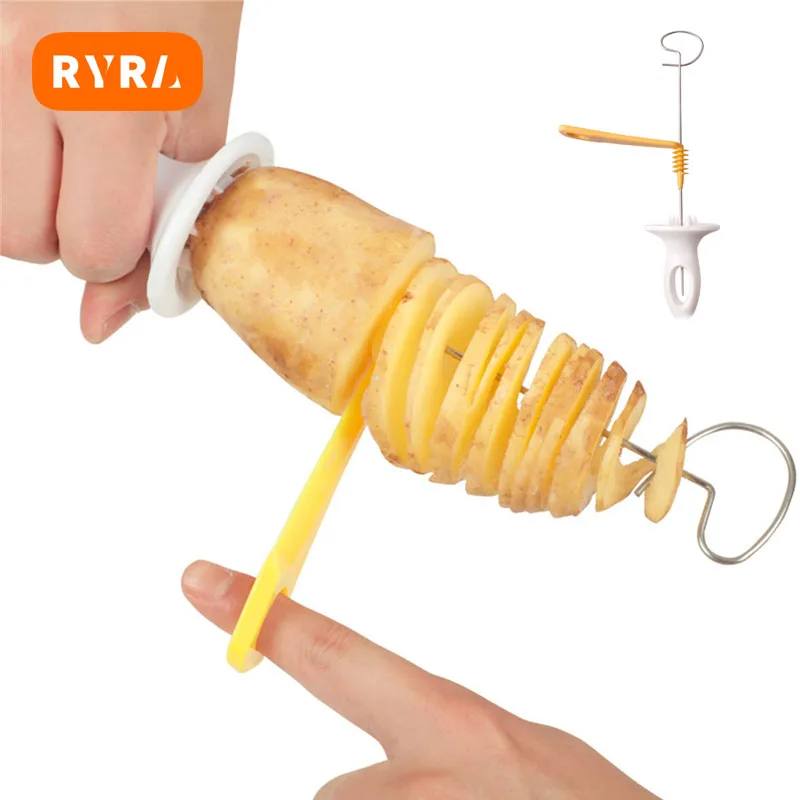 Pommes de terre Tornado Coupe-frites Coupe-pommes de terre Coupe-tour De Pommes De Terre, Twister De Pommes De Terre En Spirale, Coupe-tour De Pommes De Terre Twister De Pommes De Terre En Spirale Coupe Tour De Pommes De Terre Coupe Spirale Pour Tour De Pommes De Terre Barbecue Frit Rassemblement Fete Camping Cuisine De plus, avec ce piranha spiral cutting machine, vous pouvez facilement couper des légumes comme les concombres, les pommes de terre et les carottes en de belles spirales, transformant ainsi les légumes du quotidien en créations originales, parfaites pour décorer des plats, des plateaux de fête et des collations saines. 【Lame en Acier Inoxydable de Haute Qualité】Ce coupe-spirale de pommes de terre est fabriqué en acier inoxydable de haute qualité pour garantir durabilité et tranchant, permettant une coupe précise et des spirales parfaites à chaque fois. Pour l'utiliser, il suffit de tourner le coupe-pommes de terre en spirale en acier inoxydable au centre du légume, de placer vos doigts dans l'orifice de la poignée et de tourner dans le sens des aiguilles d'une montre pour former une spirale lisse et continue. Machine pomme de terre spirale Envie de surprendre vos convives avec des pommes de terre en forme de spirale ? La machine à pomme de terre spirale est l'accessoire idéal pour réaliser des frites ou des snacks originaux et croustillants Avec ce coupeuse de spirales pour légumes, vous pouvez facilement découper de belles spirales de légumes, parfaites pour préparer des salades, des accompagnements et des décorations, ajoutant une touche artistique à vos plats. Cet appareil s’actionne manuellement à l’aide d’une manivelle, et enroule les aliments coupés en spirale autour d’un bâtonnet en bois. Sa stabilité est garantie par 4 pieds en caoutchouc antidérapant pour un meilleur confort pendant le travail 【Large Application】Notre piranha spiral cutting machine convient à tous les types de légumes, ce qui vous permet de gagner du temps lors de la préparation des repas. L'utilisation de coupe-spirale de pommes de terre améliorera votre expérience culinaire.