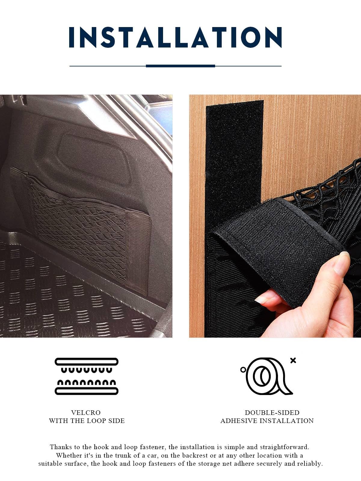 Merveille gain de place : Enfin de l'ordre dans votre camping-car, bateau ou maison ! FILET DE RANGEMENT SUR CADRE METALLIQUE 320 X200 MM pour camping car Ce filet de rangement pour voiture est l'option de rangement supplémentaire idéale pour votre voiture. Il contribue à une conduite plus sûre et il est également facile à installer Enfin de l'ordre dans votre camping-car, votre bateau ou votre maison ! Vous pouvez le fixer au mur ou dans l'atelier pour l'utiliser. Polyvalent pour les véhicules Même les charges lourdes sont maintenues en toute sécurité ! Finis les longues recherches dans le chaos des bagages ! Imaginez : plus besoin de fouiller dans le chaos du coffre ! Organisateur Voiture Ashata Filet De Chargement Arrière De Voiture Organisateur De Coffre De Filet Chien Voiture Finies les longues recherches dans le chaos des bagages ! Les filets de coffre de voiture Xzenuo sont fabriqués en nylon de haute qualité, à la fois robuste et résistant. Ils se distinguent par leur grande élasticité... Ordre dans l'habitacle - Le filet de rangement auto Xzenuo, avec ses deux poches renforcées, garde les petits objets comme les outils, bouteilles ou sprays de nettoyage bien séparés – ainsi votre coffre reste toujours organisé et les affaires à portée de main ! Tout-terrain pour véhicules : Parfaitement adapté à tous les modèles de voiture – que ce soit citadine, SUV ou camping-car. Le matériau spécial élastique Xzenuo s'adapte à toutes les formes sans se déchirer. Fixez le filet au crochet de suspension. Le filet disparaît à plat contre le mur & crée 15L d'espace de rangement supplémentaire. Élastique comme du caoutchouc : Notre matériau spécial élastique s'adapte à toute forme sans se déchirer. Idéal pour l'organisation domestique - Le filet Xzenuo avec vis & pads adhésifs offre des applications variées. Extensible comme du caoutchouc