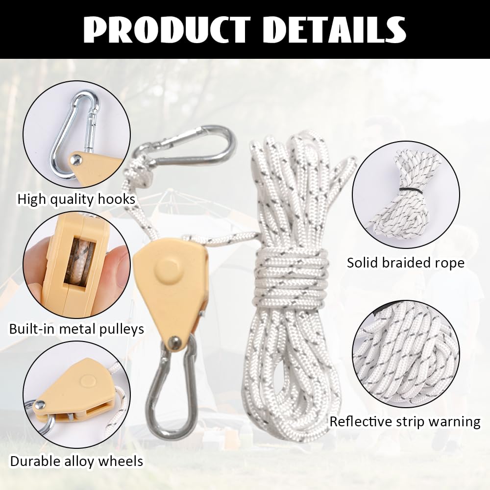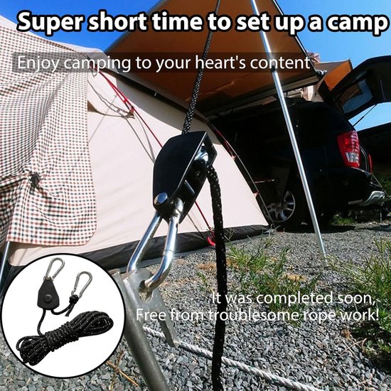 Polyvalent : ce tendeur de corde orange réfléchissant avec crochet est idéal pour la randonnée, le camping, l'escalade et d'autres activités de plein air. Il peut également être utilisé pour monter une tente, sécher des vêtements, fixer des bagages et suspendre des lampes et des panneaux réfléchissants ✨【Package List】L'ensemble contient 4 cliquets de corde ajustables réfléchissants noirs avec poulies et 1 sac de rangement. Tendeur Toile Ombrage 2 Pièces Corde à Cliquet Réglable 4M, Poulie à Cliquet Noir 1/8 Avec 2 Replacement Crochets Tendeur De Corde A Cliquet Reflechissante Pour Lampe Plantes Tente Randonnee 84545277 Fixation Voile D'ombrage 🌸 Spécifications : Matériau : Nylon haute résistance Couleur : Noir Taille : Image de référence 📦 Liste du paquet : 4* Corde à cliquet 1* Sac de rangement ✨【Widely used】Corde a cliquet peut être utilisé pour fixer des tentes, des parasols, des kayaks et des canoës fixes, des vêtements suspendus, des pots de fleurs ou des barres de toit fixes, des bagages fixes, etc. Convient pour le camping, la randonnée, le pique-nique, les sorties, etc. Cet ensemble est idéal pour monter rapidement des tentes ou des auvents. Le crochet permet une fixation et un retrait faciles et rapides. Matériau de haute qualité pour une utilisation en extérieur 4Pcs Tent Wind Rope Tensioner Adjustable Pulley with Carabiner Camping Hiking Ou ✨【Corde à dessin à cliquet réfléchissante】Corde à cliquet avec crochet est tissée avec des rayons réfléchissants. La longueur de la corde est de 4m, le diamètre est de 4mm, et il est léger et facile à transporter. ✨【Corde ajustable】Cordes à cliquet est équipé d'engrenages métalliques robustes qui ajustent et verrouillent rapidement la corde.