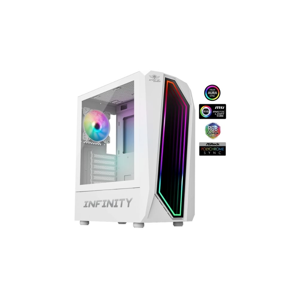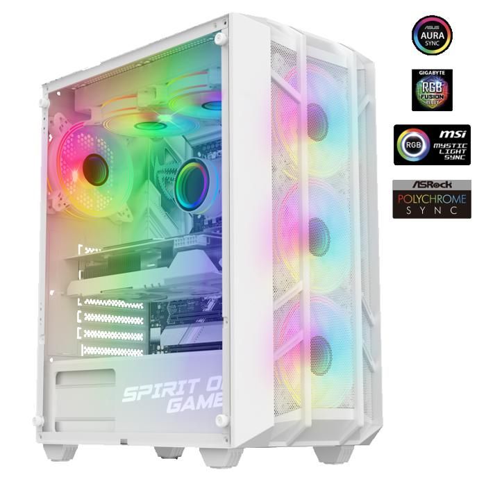 Stockage Flexible et Modulable : Configurez jusqu’à 4 SSD 2., 5’’ + 1 HDD 3., 5’’ ou 2 SSD + 3 HDD pour allier rapidité et capacité. Refroidissement Puissant : 4 Ventilateurs ARGB 120 mm inclus (jusqu’à 6 possibles) + support watercooling 360 mm. Le boîtier REBEL NX ARTIC de SPIRIT OF GAMER offre un design compact et élégant en blanc. Compatible avec les cartes mères ATX mATX et ITX il assure un refroidissement optimal grâce à 4 ventilateurs ARGB préinstallés Optez pour les boîtiers PC Gamer de Spirit Of Gamer, conçus pour répondre aux besoins des gamers exigeants. Profitez de designs innovants et de fonctions avancées pour plonger au cœur de l'action. Le Spirit Of Gamer - Boitier PC Gamer RGB est idéal pour ceux qui veulent un éclairage personnalisable Gestion de câbles intégrée et filtres à poussière amovibles pour un montage propre et durable. Spirit Of Gamer - REBEL NX : Libère La Puissance De Ton Setup Un Boîtier Gamer Au Design Robuste Di Compact (37 x 20 x 45 cm), léger (4 kg), le tout avec un style RGB immersif. Investissez avec Confiance : Ce boitier pc gamer dispose du meilleur rapport qualité/prix. Tour Gamer Avec Rgb SPIRIT OF GAMER DEATHMATCH 5 - Boitier PC Gaming ATX - MATX - Compatible MITX / 3 Ventilateurs Châssis Ventilateurs ARGB Le flux d’air est optimisé et rétroéclairage RGB synchronisable (ASUS Aura, MSI Mystic Light, Gigabyte RGB Fusion). Une alternative pour tous les types de joueurs qui souhaitent bénéficier d’un gameplay optimal sans se ruiner. Compatibilité Maximale : Accueille cartes mères ATX, mATX, ITX, GPU jusqu’à 325 mm et ventirads CPU 160 mm.