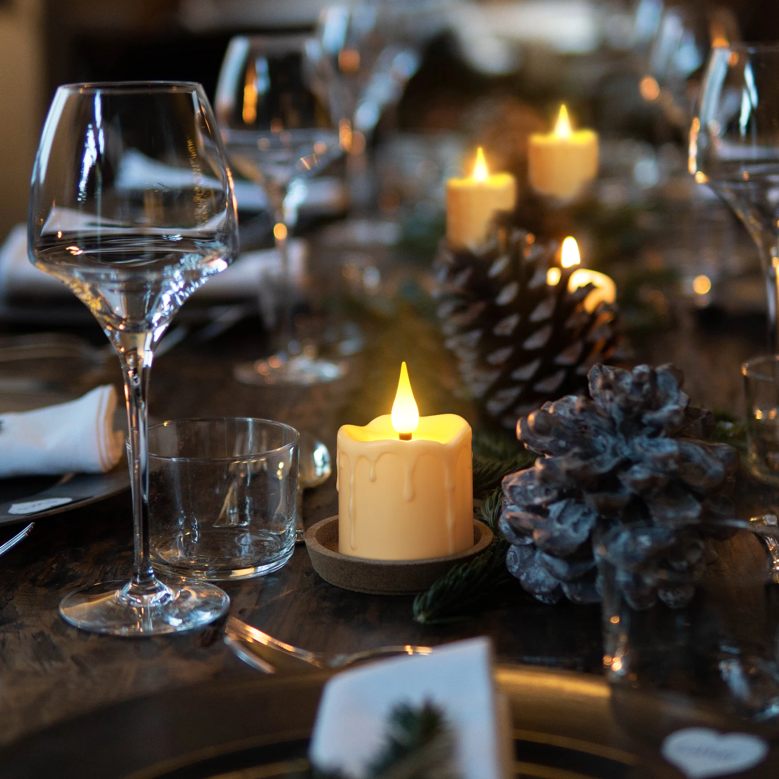 Sa lueur subtile rehausse l'atmosphère, ce qui la rend parfaite pour les soirées douillettes, les dîners romantiques ou les réunions festives. Matériau : Fabriquée à partir de matériaux de haute qualité, notre bougie de prière sans flamme LED Devotion garantit durabilité et longévité. Vous pensez que les bougies led sont dangereuses, pas très pratiques et artificielles pour une belle décoration ? Nous allons vous convaincre du contraire Des bougies LED et chauffe plat LED pour tous vos évènements • Rustique, avec un effet rétro idéal pour les mariages vintage dans le cadre d’une décoration végétale Décoration intérieure : apportez une lueur chaleureuse et accueillante à votre maison avec ces bougies sans flamme vacillantes. Set of 4 LED candles with a remote, white Elles sont parfaitement adaptées pour embellir votre chevet, votre salle à manger ou tout autre espace qui nécessite des accessoires décoratifs. Créez une atmosphère captivante où que vous soyez. Bougies Cristal Lumineuses Décoratives Vivezen - Lot De Bougies à LED En Cire Avec Télécommande, Flamme Vacillante – Plusieurs Tailles - Décoration Fausses Bougies électriques Ambiance Vous pouvez compter sur sa présence apaisante pendant de nombreuses années. Merci de votre compréhension. Sa surface scintillante reflète magnifiquement la lumière, ajoutant une touche de glamour à votre espace.
