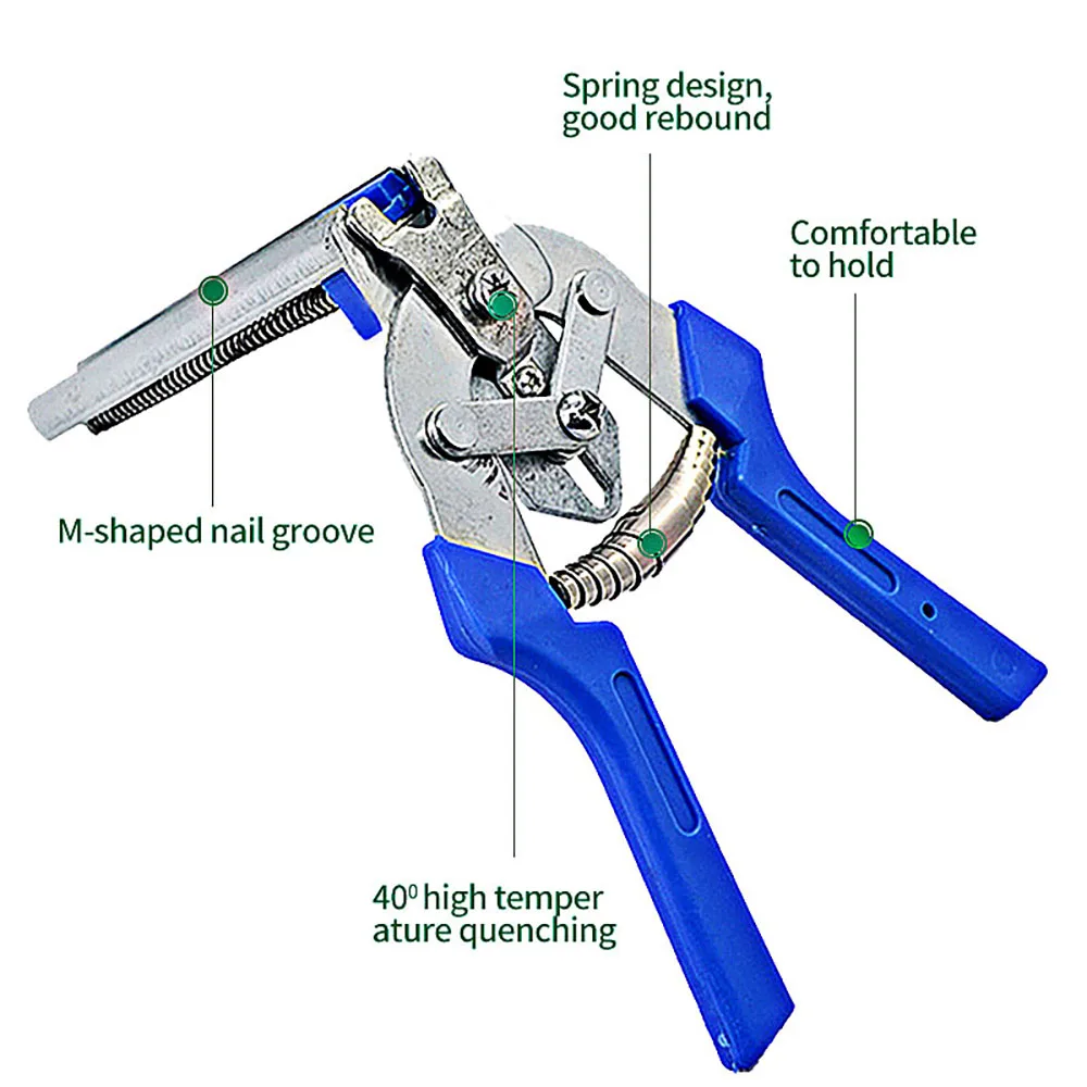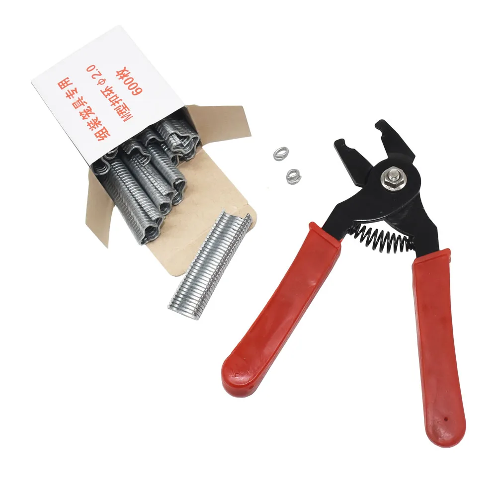 Contenu : 1 pince à anneau de porc + 600 clips PINCE DE SERRAGE,Plier--Pince de fixation pour cage, anneau de porc, pince à encliqueter, oiseau Les pinces à anneaux de porc sont des outils manuels robustes conçus pour la réparation et l'installation de cages à lapins, cages à poules et autres structures similaires Excellent outil pour les cages à lapin, les cages à volaille, la construction de poulaillers, les cages à caille, les cages à oiseaux et plus encore. Large gamme d'utilisations : utilisé pour les cages d'animaux domestiques, les clôtures, les pinces de garde-corps, adapté pour l'assemblage de diverses cages ou la réparation de points de soudure. Outil polyvalent et polyvalent : ces pinces à anneaux de porc sont conçues pour une large gamme d'applications, y compris les clôtures métalliques, la construction ou la réparation de coussins de voiture et même l'étanchéité des produits de supermarché Caractéristiques : haute résistance, haute dureté. Mâchoire en forme de M, avec clous en forme de M, plus pratique à utiliser. Pince Anneau Porc Kit De Pinces à Anneau De Porc De Type M Avec 2400 Clips M, Pince De Pince Clôture Rapide Clips
