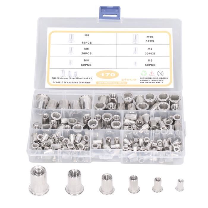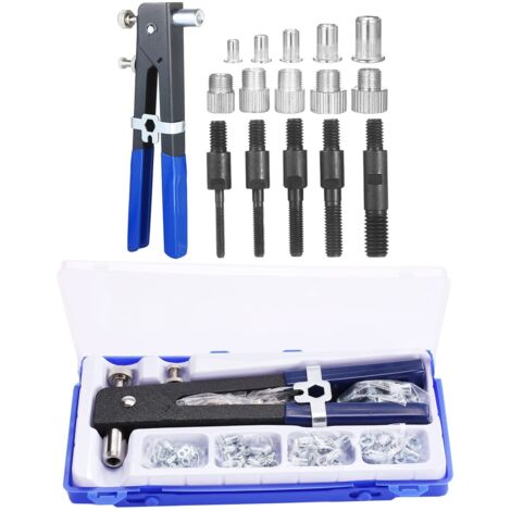 Fabrication robuste pour une longue durée de vie. Pince à rivets aveugles professionnelle en acier chrome-molybdène de qualité supérieure avec revêtement en nickel. Pince à riveter manuelle avec poignées antidérapantes pour travailler en toute sécurité en cas d'utilisation intensive Le kit contient 240 écrous à riveter de différentes tailles qui conviennent à de nombreuses applications. Tailles d'alésage précises : les supports d'écrou de rivet sont adaptés aux tailles d'alésage courantes (M3-M10), assurant une prise en main sûre et une connexion durable dans une variété de matériaux. Kit complet : comprend 240 écrous à riveter de tailles M3 à M10, ainsi que des accessoires assortis tels que des écrous de raccordement, des clés de montage et une pince à riveter haute performance pour les applications professionnelles. Manipulation ergonomique : les bras de levier longs avec poignées en caoutchouc permettent une utilisation sans effort à 2 mains avec une transmission optimale de la force pour un travail précis avec des écrous à rivets. Construction robuste : les composants en alliage de haute qualité avec tête de pistolet trempé assurent la durabilité, tandis que le dispositif de réinitialisation rotatif permet un desserrage rapide des écrous à rivets. Matériau De Qualité]Les 80 pièces ecrou a sertir sont fabriquées en aluminium de qualité supérieure, résistant à la corrosion et à haute résistance; La pince... Spécifications: Compatible avec les écrous à rivets dans les tailles M3, M4, M5, M6, M8 et M10., Deux bras de levier avec poignées ergonomiques en caoutchouc pour une utilisation à 2 mains sans effort. SUC-crous de rivetage aveugles Ensemble d'écrous à riveter aveugles Ensemble Rivetage Professionnel Ensemble D'écrous à Riveter Aveugles Crous à Riveter, Jeu D'écrous à Kit écrous à Riveter Aveugles Large application : parfait pour les fixations sur les plaques métalliques, les tuyaux, les meubles et l'électromécanique - Idéal pour les artisans amateurs et professionnels dans l'industrie et l'atelier. 240 écrous à riveter (M3, M4, M5, M6, M8, M10). Design ergonomique avec de longs leviers pour une transmission optimale de la force. Utilisation : Convient pour les fixations sur plaques métalliques, tuyaux et dans l'industrie manufacturière. Avantages : Kit complet de 240 écrous à riveter pour des applications flexibles.