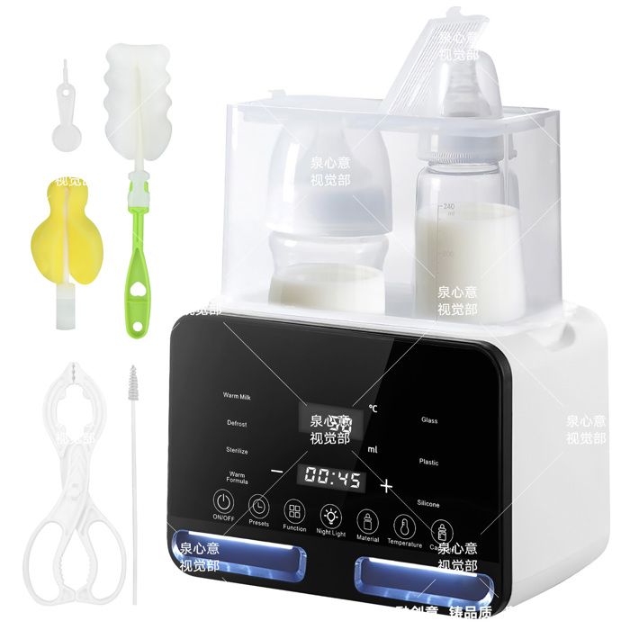 Contenu de l'emballage : 1 chauffe-biberon. Ce Chauffe Biberon Électrique Rapide utilise des algorithmes d'IA intelligents et un contrôle de température CTN pour garantir une température précise du lait et une meilleure digestion pour votre bébé Chauffe-biberon multifonction 8 en 1 pour bébé, multifonction, avec écran LCD, 2 bouteilles en même temps, chauffe-lait pour les voyages et la maison Caractéristiques du produit : Le chauffe-biberon libère du lait à température constante, de sorte que vous pouvez l'utiliser à tout moment et nourrir votre bébé en toute tranquillité. Utilisation polyvalente : ce chauffe-biberon polyvalent offre un chauffage rapide, une vapeur, un réchauffement des aliments, un maintien au chaud pendant 24 heures, une décongélation rapide, une décongélation constante, une minuterie et une température réglable. Grâce à la grande ouverture et à la grande ouverture, les bouteilles de toutes tailles trouvent facilement leur place. Ainsi, les nouveaux parents peuvent être rassurés la nuit. Design bien pensé : le chauffe-biberon est compatible avec différents matériaux de bouteille (verre, plastique et silicone) et peut contenir deux bouteilles. Chauffe-Biberon Électrique 8 en 1 Multifonction: Combinez réchauffage express (3 min/40°C), stérilisation vapeur, décongélation douce et maintien de température 24h/24. Équipé d'un écran tactile intuitif, d'une protection anti-surchauffe et d'un arrêt automatique sécurisé pour une utilisation domestique sans risque Chauffage Rapide et Universel: Optimisé pour tous types de... Le chauffe-biberon pour bébé utilise des algorithmes intelligents d'IA et un contrôle de la température NTC pour assurer une température de lait précise qui a un effet positif sur la digestion de votre bébé. Chauffe biberon mam pas cher | Kiabi Chauffe Lait écran Lcd Chauffe Biberon, Chauffe Biberon Électrique Rapide 8-En-1 Stérilisateur Biberon électrique Préparation rapide des repas nocturnes : ce chauffe-biberon dispose d'une fonction d'eau chaude innovante qui maintient l'eau de la bouteille à 45 °C pendant 48 heures. Le chauffe-repas multifonction pour bébé utilise PTC pour un chauffage rapide et vous permet d'économiser du temps et des efforts en cas d'urgence. Spécifications: Matériau : polypropylène Dimensions : 19 x 12 x 24 cm. Surface de maintien au chaud : 16 x 9 x 9,2 cm., Poids net : 750 g. Tension d'alimentation : 220 V 50 Hz.