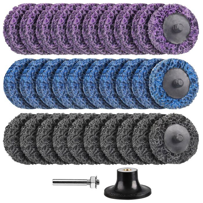 5 x Disques abrasifs Bleu 10 x Disques abrasifs Violet Le disque CSD de 50 mm est idéal pour enlever la peinture,les adhésifs,le nettoyage,le nettoyage des joints et des éclaboussures,l'élimination de l'oxydation de surface,les surfaces de voiture Grâce à l'élastomère de résine,les abrasifs tranchants sont fermement fixés au tissu fibreux pour répondre à vos besoins quotidiens de ponçage et de polissage 2 x Barres Métalliques,1 x Palette Find many great new & used options and get the best deals for 20 Pièces Disque Nettoyage Meuleuse 50mm Disque Abrasif Disques Abrasifs CSD ... at the best online prices at ! Free shipping for many products Disques De Nettoyage CSD Disque 20 Pièces Disque De Nettoyage Grossier 50mm Disque De Nettoyage En Acier Pour Polissage D'Enlèvement Peinture Éliminer La Rouille Les Soudures Le paquet Comprend:10 x disques abrasifs violets,5 x disques abrasifs bleus,5 x disques abrasifs noirs,2 x barres métalliques,1 x palette. Taille du Disque de Nettoyage:Le disque de nettoyage grossier a un diamètre de 2 pouces et une épaisseur de 0,5 pouce. Multiples Applications:Le disque CSD de 50 mm peut être utilisé sur une grande variété de matériaux tels que le métal,le fer,l'acier inoxydable/l'alumine,etc. Nettoyer la peinture sur différentes surfaces Kit Disques Nylon Violet Bleu Noir Lot De 5 Disques De Nettoyage Pour Meuleuse CSD 125x22mm Violet - Abrasif Pour Peinture Disques Abrasifs Meuleuse Kizaten 20 Pcs Disques Abrasifs CSD 50mm,Disques de Nettoyage plus Épais pour Meuleuses D'angle pour L'élimination de la Peinture,Rouille,Des Soudures et de L'oxydation Eliminer les taches sur le mur de soutènement en béton Le set de disques de nettoyage est un outil abrasif très résistant,très élastique,en nid d'abeille et souple,composé d'un tissu en nylon de haute qualité et de pastilles. Nettoyer les oxydes et la saleté avant et après le soudage et la soudure des métaux Ponçage uniforme avec moins de poussière,silencieux,sans obstruction et adapté à tous les revêtements et toutes les surfaces 5 x Disque abrasif Noir pour éliminer efficacement la rouille,la saleté,les bavures,la peinture,les soudures,la calamine,les oxydes et autres contaminants de surface