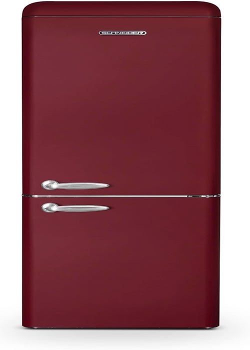 Joints Amovibles Le joint amovible facilite le nettoyage de votre réfrigérateur. Collection Feeling’s : un design affirmé Avec leurs lignes arrondies et leur poignées rétros, les réfrigérateurs Schneider évoquent tout particulièrement le design si séduisant des années 1950., Pour qu’ils s’adaptent parfaitement à vos goûts, la gamme est disponible en 8 coloris, du traditionnel noir mat, en passant par le rouge, le bleu jusqu’au nouveau coloris : le Vert Amande! Pratique, il se remplace facilement pour prolonger la vie de votre appareil. SCHNEIDER SCB300VCR - Fiche technique, prix et avis Très simple d'entretien grâce à son dégivrage automatique Réfrigérateur Combiné 327 L SCCB327HNFWE de Schneider Design Rétro Années 50 Rouge Réfrigérateur Congélateur 300 Litres Froid Brassé 60 Cm - Coloris Rouge Réfrigérateur Combiné Vintage Description générale Le réfrigérateur combiné SCB300VR de Schneider, avec une hauteur de 190 cm et un design rouge vintage, offre une capacité totale de 304 litres. Ce modèle est conçu pour garantir une conservation optimale de vos aliments grâce à son système d'air froid brassé, qui assure une température uniforme à l'intérieur de l'appareil, réduisant ainsi la déshydratation...