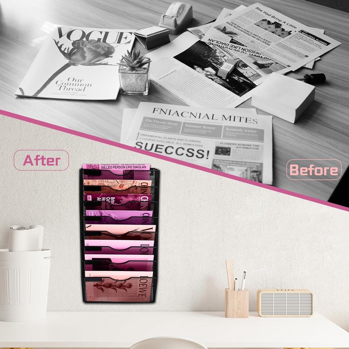 Plusieurs compartiments sont conçus pour économiser plus d'espace et rendre votre bureau plus propre ou bien rangé., 4., Il est parfait pour une utilisation au bureau ou à l'école. Informations de base: Matériel: plastique Style de Support: porte-fichier Taille: 25., 5*23., 5*23., 5mm Genre: tous les gens Saison: printemps, été, automner, hiver Caractéristiques: solide, résistant à l'usure et durable, facile à nettoyer Occasion: étudiants et aux hommes d'affaires Qu'y a-t-il dans la boite? - 1×porte-fichier, 1., Le porte-fichier est fabriqué en plastique épaissi, résistant à l'usure et durable. Peut être utilisé dans un tiroir ou module de rangement, ou sur un bureau ou une étagère. Caractéristiques. Longueur. 25.4 cm. Largeur. 8.9 cm Parfait pour afficher et stocker vos magazines, fichiers, document, livre de littérature, cahier, journal, calculatrices, agrafeuses, CD, etc., et rangez votre bureau ou votre étagère Idéal pour afficher et stocker vos magazines, fichiers, documents, livres, journaux, etc., 5., Design de stockage vertical, il peut maximiser l'espace pour organiser et classer vos documents et garder vos fichiers ou lettres. HAIYUU Porte-revues pliable, 3 compartiments Porte Revue Bureau Différentes couleurs sont disponibles. C'est une fourniture de bureau ou d'étude indispensable, aussi le meilleur cadeau pour vos enfants, vos amis et votre famille. Boîte Rangement Plastique 3 Compartiments Organisateur De Fichiers Durable Avec 3 Compartiments Boîte De Rangement En Plastique Pour Bureau École Porte-revues Pour Présentoir Et Stockage De Livres, Magazines, Documents Organisation Bureau école Le matériau est épais et solide, facile à nettoyer., 2., La taille est de 25., 5*23., 5*23., 5cm. Le porte-fichier est fabriqué en plastique épaissi pour plus de durabilité. C'est une fourniture de bureau ou d'étude indispensable.