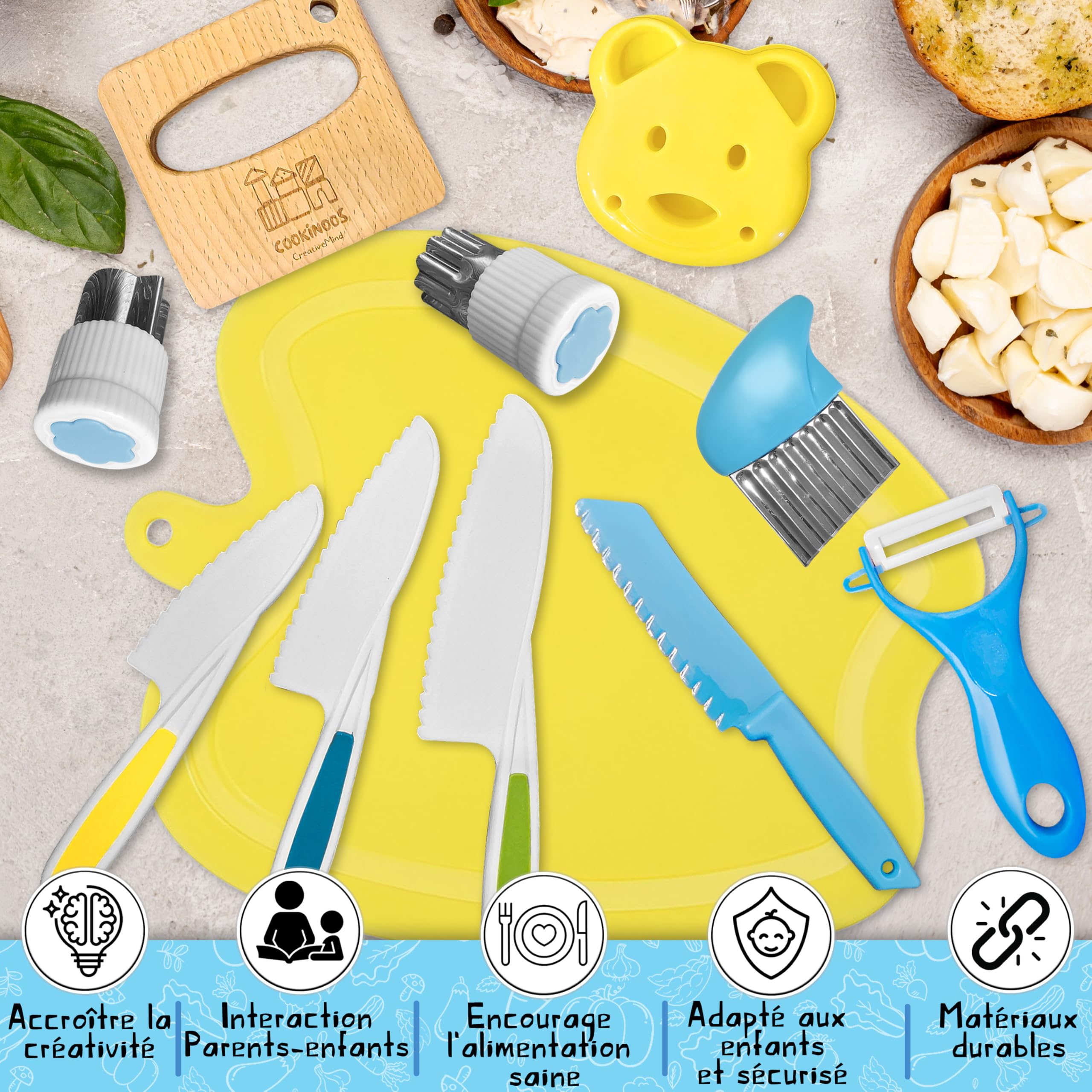 Les bords dentelés ne sont pas faciles à blesser les mains, plus sûrs à utiliser. 🍅Kit Cuisine Enfant: La poignée est conçue en fonction de la forme de la main des enfants, confortable à saisir et facile à contrôler, coussin antidérapant intégré qui peut empêcher le dérapage et économiser des efforts. 🍳Couteau Cuisine Enfant: Ces emporte-pièces de cuisine sûrs sont spécialement conçus pour les tout-petits, ce qui peut stimuler l’intérêt des enfants pour la cuisine, leur apprendre à cuisiner, exercer la coordination œil-main, améliorer la cognition et cultiver leurs capacités pratiques. Kit Couteau sécurité de Cuisine pour Enfants - 16 Pièces Couteau 🍌Set de Couteaux pour Enfants: Le coupe-cuisine pour tout-petits peut facilement couper divers types de légumes, de fruits, de desserts et d’autres aliments, largement utilisés dans les réunions de famille, les pique-, les fêtes d’anniversaire, les activités parent-enfant, etc. Couteau enfant cherry – Kiddikutter. - Histoire de tribu Couteaux Apprentissage 3 Ans Couteau Enfant,Couteau Cuisine Enfant,Kiddy Cutter,Couteau Plastique Couteau Montessori Plastique Inox Céramique Acheter le Couteau Enfant KiddiKutter, French Flair