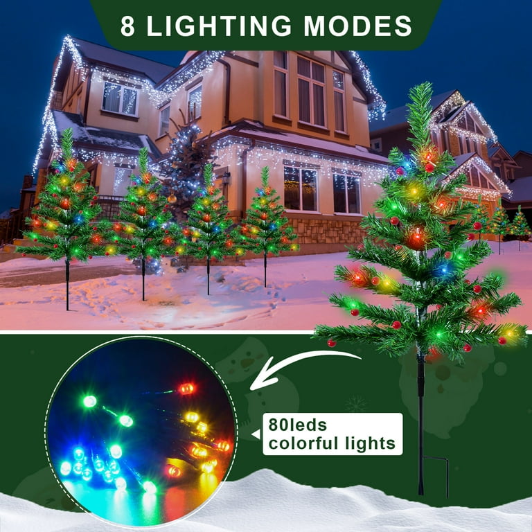 Guirlande solaire pour arbre - Magic Solaire Parfaites pour une utilisation extérieure à long terme, elles maintiennent une illumination brillante par conditions difficiles tout en ajoutant une lueur chaleureuse et romantique à votre paysage de Noël. Décoration Allée Patio Noël Qoosea Guirlandes Solaire Arbre De Noël 4-en-1 Extérieur, 80 LED 8 Modes Pilotis Solaire Jardin Imperméable Décoration Noël Pour Jardin Allée Patio Arbre De Noël Solaire 4 En 1 Extérieur Arbre de Noël Solaire 4-en-1 Amélioré: Apportez de la magie à votre décoration de fête avec l'ensemble enchanteur d'arbres de Noël solaires de Qoosea. Une fois installé, chaque arbre mesure 60cm de haut. Pour des performances optimales, ajustez l'angle du panneau solaire pour maximiser l'exposition au soleil selon les conditions météorologiques. Parfaits pour la décoration extérieure de Noël, ces lampes solaires de jardin illuminent les allées, les pelouses et les espaces extérieurs avec une lueur festive-créant une atmosphère joyeuse pour les fêtes Qoosea Guirlandes Lumineuses Solaires sur Pied en Forme de Sapin Elles s'allument automatiquement au crépuscule et s'éteignent à l'aube, pour un fonctionnement sans souci et un charme festif sans fin toute la saison. Installation Facile avec Câble de 2m: Les lumières d'arbre de Noël solaires sont livrées avec un câble de 2 mètres pour une installation rapide et facile, assurant un espacement constant de 0,55 mètre entre les arbres pour un attrait visuel optimal et un éclairage extérieur uniforme. Fabriqués avec des matériaux de haute qualité résistants aux intempéries, ces arbres ont des branches flexibles qui maintiennent les ornaments et conviennent parfaitement aux jardins, patios et allées.