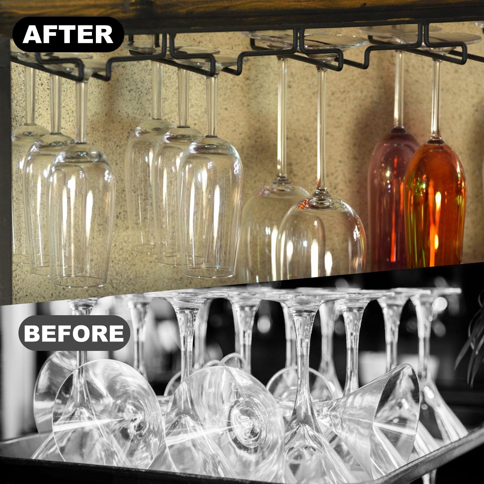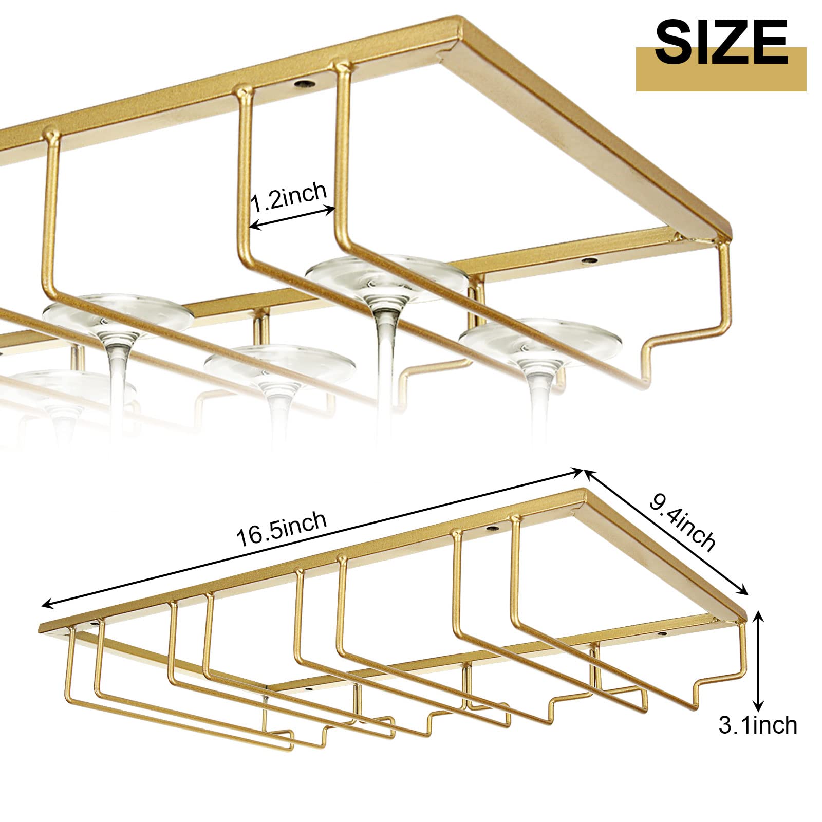 Remarques : Les porte-verres en acier inoxydable ne sont pas inclus dans le paquet, vous devez donc les acheter vous-même S'il y a un problème de qualité du support pour porte-verres ou si vous avez des questions sur ce produit, veuillez nous contacter et nous vous répondrons dans les plus brefs délais. Vous pouvez fixer ce support mural pour verre à vin en acier inoxydable très rapidement et confortablement au mur ou dans l'armoire à travers des trous Spécification : - Matériau : fer - Couleur : doré. Lot de 2 porte-verres à vin en acier inoxydable, porte-verres à vin à suspendre, convient pour les bars et les restaurants, support à vin noir mat (3 rangées Avantage de JMIATRY Wine Rack Le paquet comprend 2 supports à verre à vin de couleur or, chaque taille est de 41,9 x 9,9 x 7,9 cm, chaque étagère a 4 fentes, peut contenir jusqu'à 12 tasses, assez pour un usage quotidien. Le porte-lunettes sous étagère avec matériel de montage, il suffit de serrer les vis avec un tournevis pour installer le support de verres sous le comptoir ou l... Matériau : cette étagère à verres à vin suspendue à quatre étages est fabriquée en fer robuste et durable, ce qui la rend résistante à la déformation et à la casse et offre une longue durée de vie Porte-Verres à Vin Suspendu Sous l'Armoire Support de Verre à Vin en Utilisation polyvalente : cette étagère en verre à pied est adaptée pour ranger des verres à vin, des verres à cocktail, des flûtes à champagne et des tasses à thé à la maison ou au bar et assure une ambiance propre et bien rangée Contenu de la livraison : deux étagères à verres à vin montées au plafond en métal de 41 x 23,5 x 6 cm. Organisateur Sous Evier Cuisine PORTE-VERRES À VIN Sous L'armoire, Facile à Installer, Support à Tasses Porte Verres à Vin Sous Armoire - Dimensions : 41 x 23,5 x 6 cm Contenu de la livraison : 2 étagères pour verres à vin. Il suffit d'utiliser des trous de fixation et d'essuyer les serviettes. Spécifications: Ce support pour verres à pied adopte le processus de pulvérisation, doré et tendance.