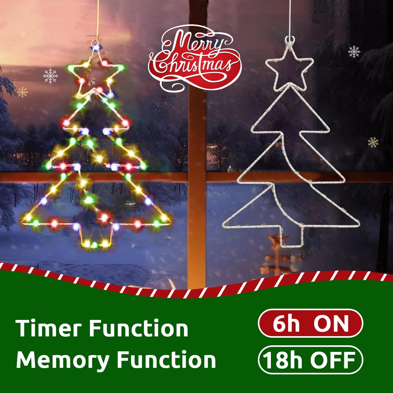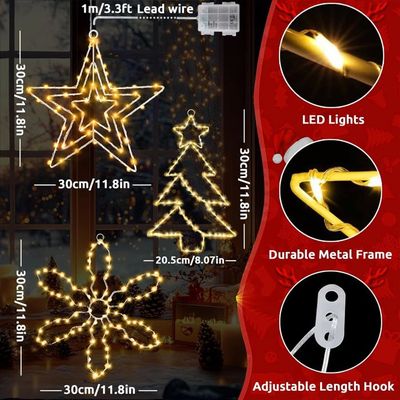 Étanche IP65 & Sécurisé – Cette décoration de fenêtre de Noël ne surchauffe pas, boîtier de batterie protégé IP65 : Utilisable même sous la neige/la pluie ! Lorsqu'elles sont suspendues à la fenêtre, elles dégagent une lueur étincelante et onirique ! Design avec crochet pour rebords de fenêtre, murs et arbres. Lot de 5 lumières de Noël pour fenêtre avec minuterie, alimentées par piles, à suspendre, LED pour sapin de Noël, cheminée, décoration | Leroy Merlin Adapté Intérieur & Extérieur – Ces guirlande lumineuse et étoiles illuminées décorent parfaitement les sapins de Noël, cheminées, porches et plus – pour toute fête de Noël ! Sapin de Noël extérieur : Un élément central pour votre décoration extérieure, idéal pour créer un point focal festif. Tapis d'entrée festif : Accueillez vos invités avec style et protégez votre intérieur des intempéries Decoration Noel Exterieur à Pile Dekofun Étoile Lumineuse 2 Pièces LED De Noël à Suspendre, Décoration Extérieure à Pile Avec Minuterie, Sapin Étanche Fenêtre Lumineux Pour Balcon Fête Intérieur Maison Decoration Noel Guirlande Lumineuse Exterieure Intérieur 10M-100Leds Pile Guirlande...
