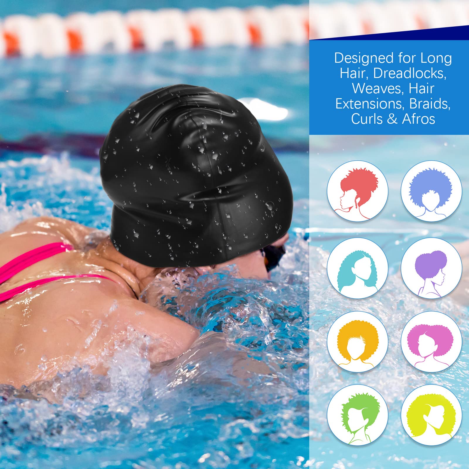 La conception ergonomique de la section des oreilles protège les oreilles de l'eau et donne au bonnet une sensation sans friction contre les oreilles. 【Espace Supplémentaire pour les Cheveux Longs】Nos Bonnet de Bain sont Conçus Spécialement pour les Cheveux Longs, y Compris les Tresses Longues, les Dreadlocks, les Boucles, les Twists et les Styles Afro. C'est le bonnet de bain parfait pour les cheveux longs pour des dreads ou des tresses jusqu'au milieu du dos. Très grand bonnet de bain pour dreadlocks et tresses ! C'est la taille parfaite pour les dreads ou les tresses qui s'étendent au-delà du milieu de votre dos Parcourez notre sélection de bonnet de bain extra large : vous y trouverez les meilleures pièces uniques ou personnalisées de nos boutiques 【Retour d'argent sous 90 jours】Le paquet comprend 1 bonnet de bain noir et 1 bonnet de bain blanc. Grand bonnet de bain pour femmes et hommes pour Guadeloupe La matière de haute qualité nous donne une grande confiance dans nos bonnets de bain. Un service après-vente parfait est garanti. Petit, Noir) - Bonnets de Bain pour Cheveux Longs Enfants - Bonnet de Bain pour Filles Garçons Enfants Adolescents avec Tresses Cheveux Longs Bouclés Dreadlocks - Bonnet de Bain 100 % Silicone Hypoallergénique Imperméable 【Gardien des Cheveux Sains】Nos grands bonnets de bain entièrement protégés empêchent les cheveux d’entrer en contact excessif avec le chlore, les bactéries et les produits chimiques présents dans l’eau qui peuvent endommager les cheveux. Lot de 2 bonnets de bain extra-larges pour cheveux longs, bonnet de bain adulte en silicone conçu pour les tresses, boucles, dreadlocks, tissages, extensions de cheveux, afros - bonnet de bain pour femmes et hommes (noir, blanc) Veuillez noter : Le bonnet de bain est assez grand et ne convient pas aux enfants ni à ceux ayant peu de cheveux, car il peut laisser pénétrer l'eau !