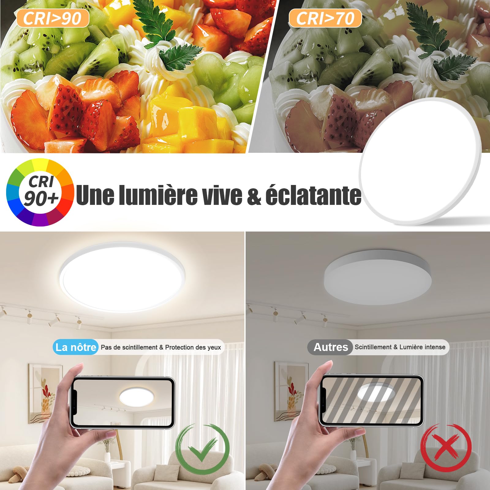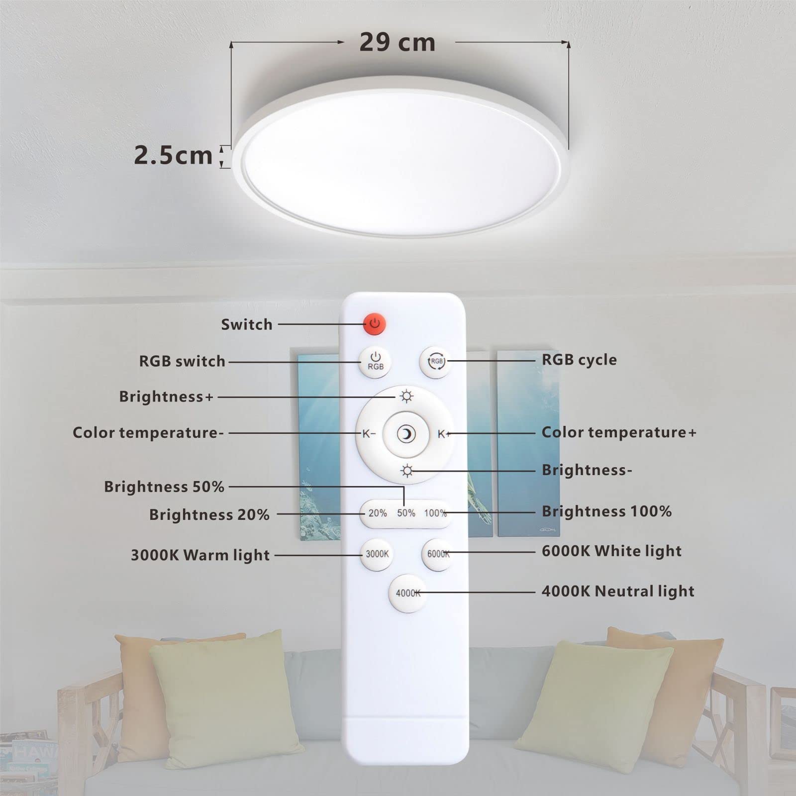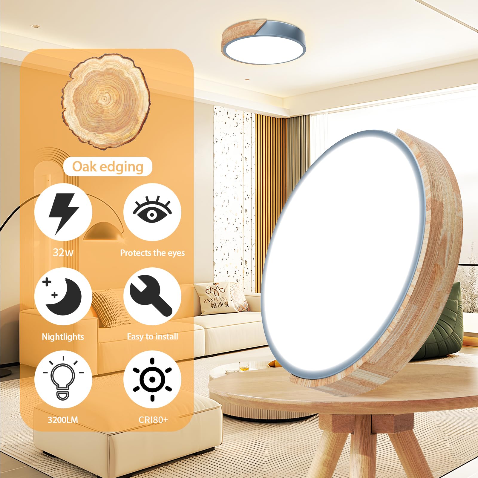 【Facile à installer】Étape 1 : percez 3 trous sur le mur et fixez le corps de la lampe au mur avec des vis ; Étape 2 : éteignez l'alimentation et connectez la lampe et les fils au mur lorsque cela est sûr ; Étape 3 : Pliez légèrement le masque dans le corps de la lampe, c'est terminé ! 【Dimmable Plafonnier】Ce plafonnier LED dispose de trois modes d'éclairage : lumière chaude 3000K, lumière neutre 4500K, lumière blanche froide 6000K, luminosité réglable 10%-100%, vous offrant une lumière adaptée à diverses occasions ! 【Chêne de haute qualité】 Ce plafonnier en bois est en chêne naturel, 100% anti-insectes, anti-corrosion, anti-oxydation, design moderne unique est très approprié pour une utilisation dans les chambres, salons, couloirs, cuisines et autres scènes , 【Télécommande 2., 4G】Ce plafonnier choisit la télécommande 2., 4G, contrairement à la télécommande infrarouge traditionnelle, la télécommande 2., 4G est plus sensible à la lumière, la reconnaissance plus élevée, et plus de distance de contrôle à distance ! Plafonnier Led Classique Yexati Plafonnier Bois,Plafond Dimmable 3000K-6000K éclairage 3000K 4500K 6000K Plafonnier LED : Quel est le eilleur en 2024 Pour un salon moderne, optez pour des plafonniers en bois naturels, des modèles LED écoénergétiques, ou des designs minimalistes avec des lignes épurées. Explorez des luminaires adaptés à votre décor et qui ajoutent une touche d'élégance tout en créant une ambiance chaleureuse WayLuoung LED Bois Rond Plafonnier, 12W 23cm Base eois Intérieur Rond