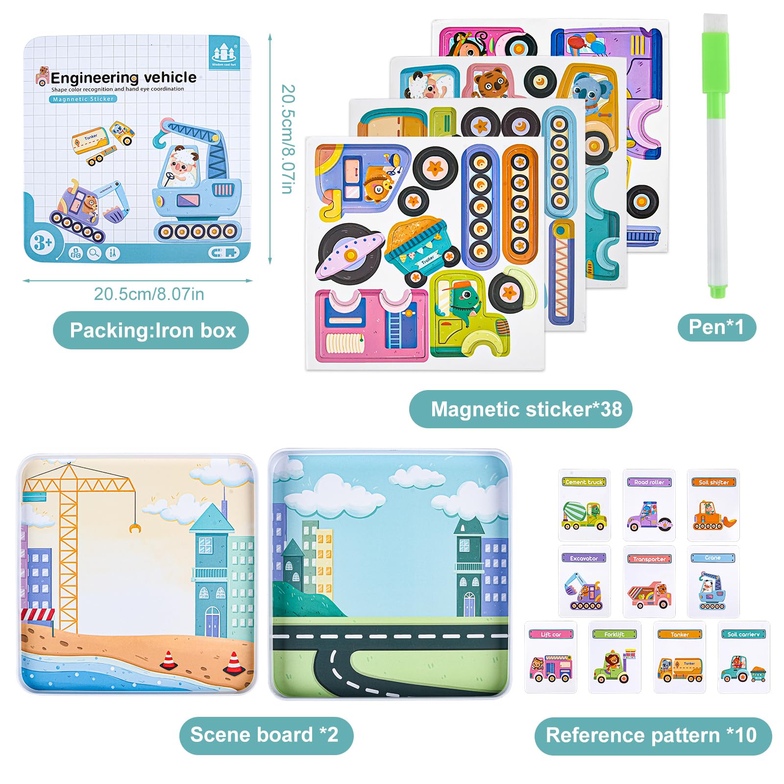 Après avoir terminé le puzzle, les enfants auront un sentiment d'accomplissement et de satisfaction. Développement cérébral : jouer avec des puzzles stimule l'imagination, la créativité, la concentration et la dextérité manuelle des enfants, favorisant ainsi leur développement global Description du produit 【ASTARON TODDLERS MAGNETIC PUZZLE GAME BOX】 -Puzzles are the perfect combination of learning and fun. Les puzzles aident également à développer la coordination œil-main, la concentration et l'imagination. 🚌[Excellent cadeau de voyage indispensable] Notre livre magnétique est confortablement emballé avec de nombreux thèmes au choix, ce qui sera utile lors de tout voyage. Pour les familles en déplacement, ce jouet puzzle permet aux enfants d'âge préscolaire de jouer tranquillement et la fonction magnétique empêche les puzzles de se perdre facilement. -Get ready to be captivated by our bright and engaging jigsaw puzzle theme designed just for kids! Boîte en Fer-Blanc | Feutres de Coloriage Lavable Coffret en Fer-Blanc 🧩[Jeu magnétique] La boîte de puzzle d'habillage comprend des puzzles magnétiques *23 /carte de référence *5., Différentes tenues, coiffures et chapeaux permettent de recréer 5 professions bien connues, ou de mélanger et d'associer des aimants pour inventer des combinaisons amusantes et farfelues ! It will develop basic cognitive skills, problem-solving abilities and hand-eye coordination. All the puzzles are in a tin box., -Set Size: 13., 5cm*8., 5cm*3cm/ 5., 3x 3., 3x1., 1 inch. Pour les familles en déplacement, ce jouet puzzle permet aux enfants d'âge préscolaire de jouer tranquillement et la fonction magnétique empêche les puzzles de se perdre facilement Puzzle Magnétique Professions Métiers Jouet éducatif 3 Ans Jeu Construction Magnétique STEM MATCH - 40 Pièces - Boîte Fer Portable - Enfants 3 Ans Et Plus Tiles Magnétiques Voyage Puzzle Magnétique Enfants Each picture tells a story about imagination.