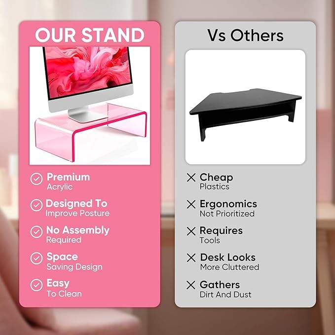Relaxdays Support moniteur, rehausseur d'écran XL en bambou et MDF, 2 tiroirs, organiseur, HBT 11x58.5x32,5 cm, blanc - Informatique Polyvalent : Convient aux écrans, ordinateurs portables, téléviseurs, consoles de jeux, décodeurs et à une variété d'accessoires. L’espace ouvert sous le support vous permet de faire passer les câbles d’alimentation, USB, réseau et périphériques, les gardant organisés et cachés. Utilisations : Bureau : Surélève votre écran pour une posture de travail optimale. Spécifications techniques Matériau : Acrylique transparent de haute qualité Dimensions : 36 cm (L) x 19 cm (l) x 10 cm (H) Épaisseur : 9 mm Capacité de charge : 25 kg Couleur : Transparent Poids : Léger mais robuste Avantages clés Protection et sécurité : La base protège votre appareil. Support en acrylique pour ordinateur portable, moniteur d'écran d'ordinateur de bureau, support rapide suréWerpour réduire la tension de cou ; Livraison gratuite Support d'écran en acrylique Zuxbolf : une solution transparente pour votre poste de travail ! 【Design transparent et moderne à l'esthétique minimaliste】 : Notre support d'écran en acrylique est fabriqué en acrylique pur et transparent de haute qualité. Surface lisse résistante aux rayures. Son matériau transparent s'intègre parfaitement à tous les environnements, désencombrant votre bureau et améliorant l'esthétique de votre espace de travail. Vous bénéficiez ainsi d’un environnement de travail plus propre, plus sûr et plus professionnel. Stabilité garantie : Une base de 9 mm d'épaisseur offre un support robuste. Maison : Idéal pour votre téléviseur de salon, votre décodeur de chambre ou votre ordinateur portable de chevet. Résistant à la chaleur et à l'humidité. Pourquoi choisir ce support ? Matériau haut de gamme : Acrylique résistant aux chocs et aux rayures pour un nettoyage facile. Sa polyvalence s’étend au-delà des écrans et des ordinateurs portables, vous permettant de surélever chemins de câbles, petites imprimantes et enceintes. Sa surface lisse et facile à nettoyer garantit un aspect impeccable. Assurance qualité : Matériaux non toxiques, sûrs et fiables pour un usage quotidien. Il offre une solution élégante et sobre qui s'intègre parfaitement à tout environnement, que ce soit au bureau ou à la maison. Fabriqué en acrylique transparent de haute qualité, il allie design minimaliste et durabilité exceptionnelle. Support écran Acrylique Transparent Support De Moniteur En Acrylique Avec Porte Stylo Assorti, Support De Moniteur En Acrylique Rehausseur Bureau Ergonomique Sa transparence laisse filtrer la lumière, créant un style léger et moderne sans altérer l'esthétique du bureau. Découvrez ce support d'écran durable qui révolutionne l'organisation de votre bureau ! Zuxbolf Support de Moniteur en Acrylique, Support pour Ecran d'ordinateur L36xW19xH10cm Rehausseur Écran PC de Bureau Support Moniteur Bureau Organiseur Transparent pour Ordinateur Portable, Écrans 【Matériau de haute qualité pour une résistance et une stabilité exceptionnelles】 : Grâce à sa plaque acrylique de 9 mm d'épaisseur, le support d'écran en acrylique transparent offre une stabilité et une durabilité exceptionnelles.